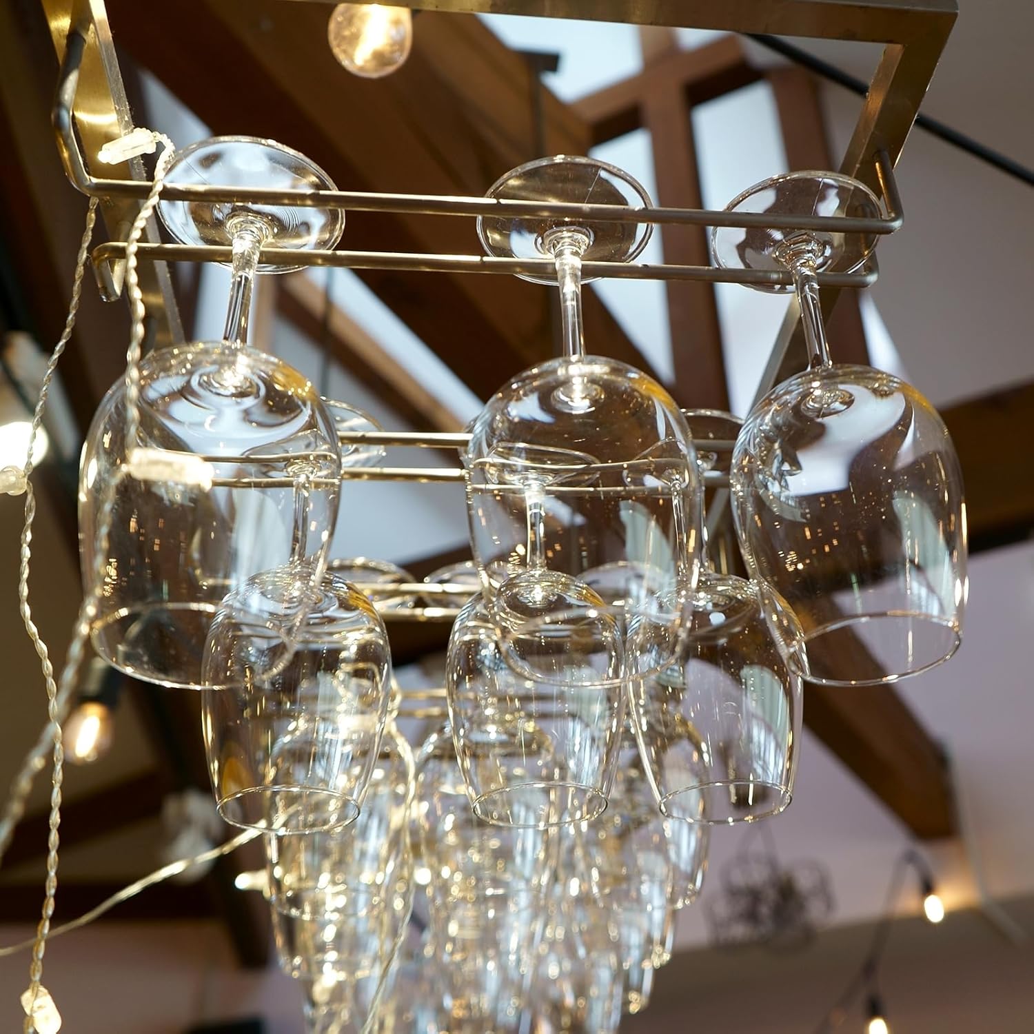 • [Compact/Elegant] This stemware rack can save cabinet space and fit the corner under the shelf perfectly, elegance to your kitchen or bar decor. The rack under the cabinet hanging glasses upside down keeps the stemware free of dust.