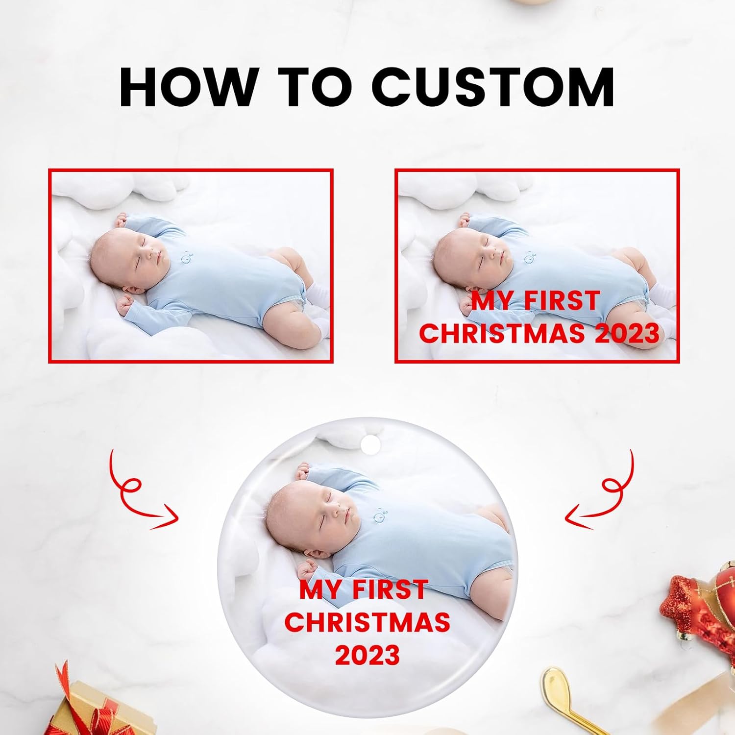Personalized Christmas Ornaments 2025, Custom Photo Text Ornament Keepsake Gift for Christmas Tree Decorations, Baby Shower, Engagement, Wedding, Birthday
