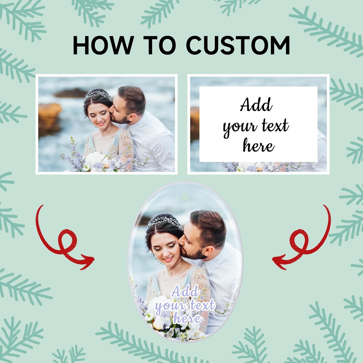 • 【Custom Photo Text Christmas Ornaments】Click on the " Customize Now " button to design your own Christmas ornament special with desired Photo, Picture, Logo, Text. Simply upload any photo, fit by the corners. Choose your font color, fill in the optional blank with your text. Our designers will do the rest.