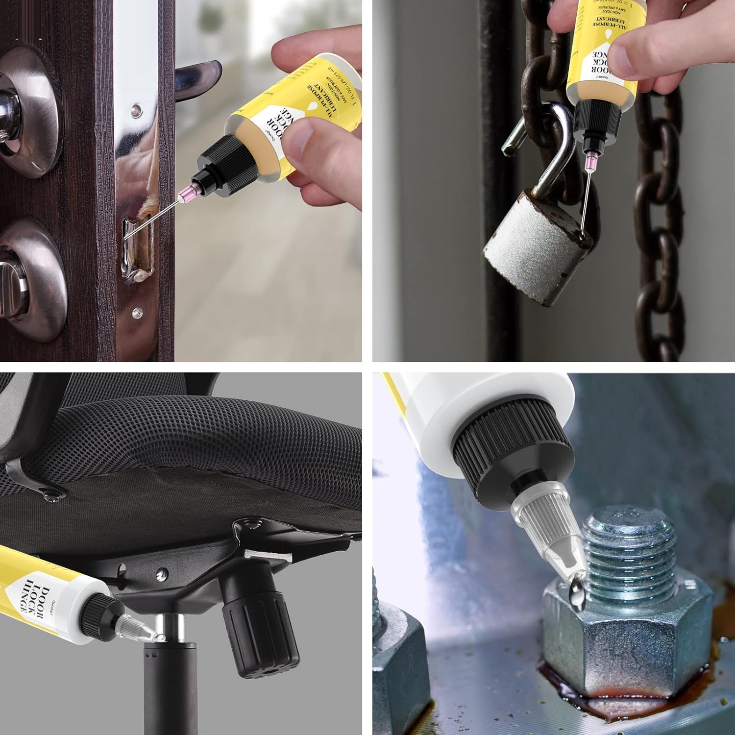 • EASY TO USE; 4oz twist spout + 1oz needle combo allows you to easily squeeze out door hinge lubricant, and makes it easy to lubricate hard-to-reach areas, get the right amount in the right spot, no worry about small gaps.