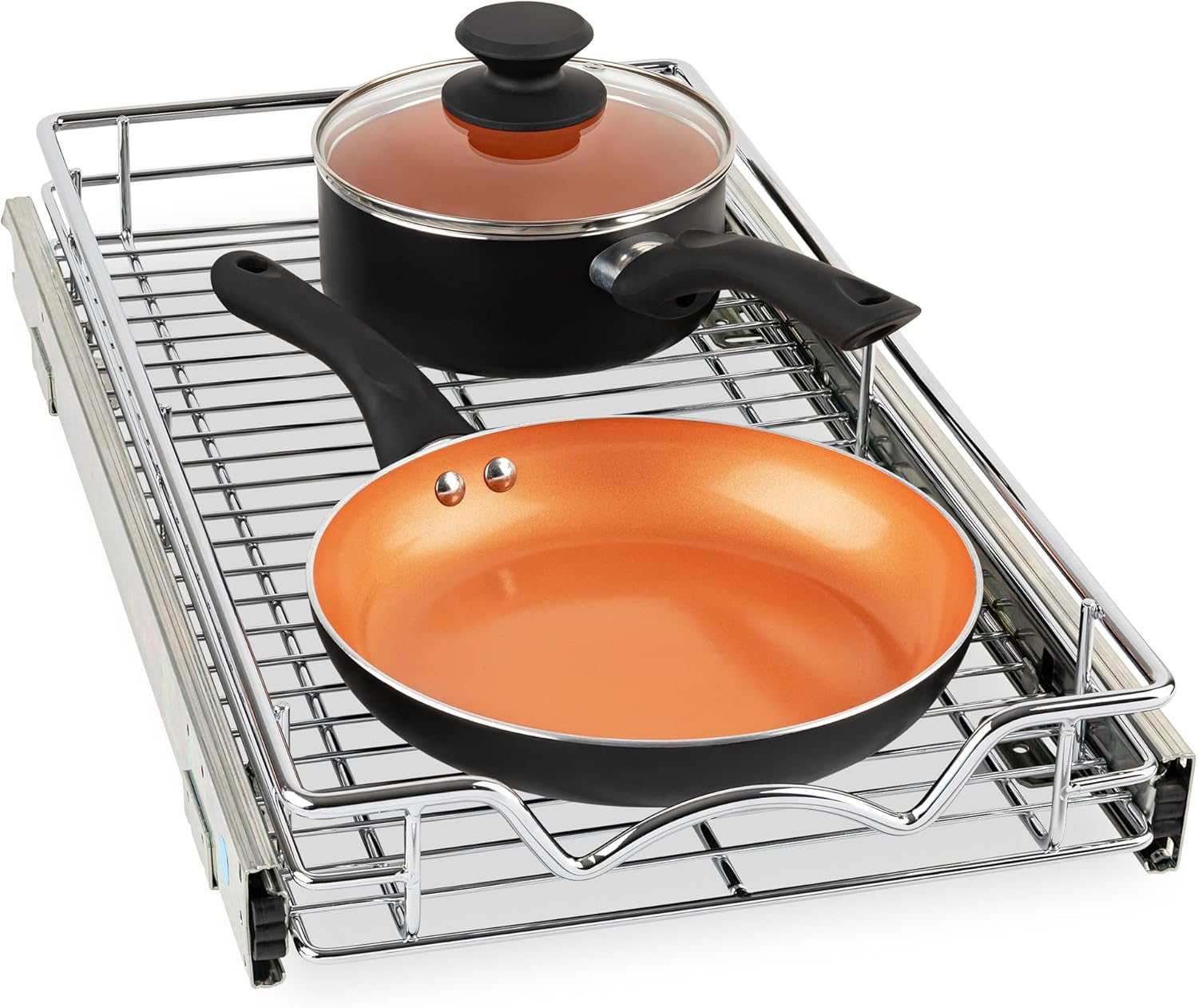 • HIGH QUALITY: Made of durable metal with chrome finish the pull out shelf for kitchen cabinet is simple and easy to install. Designed to fit any style of cabinetry and easy to clean.
