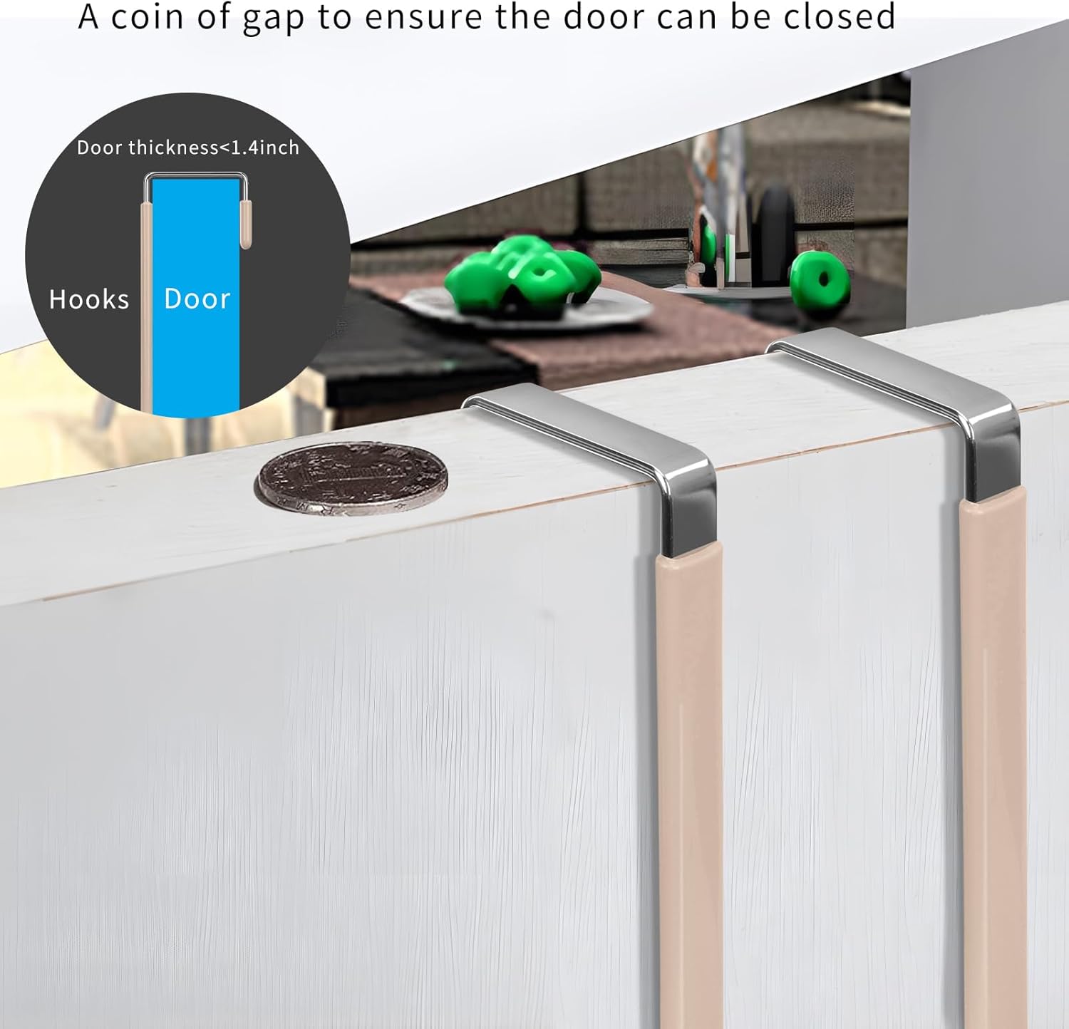 • Size: This over the door hanger hooks length 5.12 inch, groove width 1.4 inch, fit most of doors which widths range of 0.7-1.4 inches. Please measure your door before purchasing