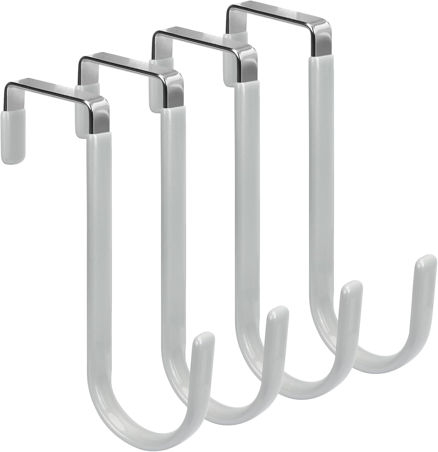 FYY Over The Door Hooks, 4 Pack Door Hangers Hooks with Rubber Prevent Scratches Heavy Duty Organizer Hooks for Living Room, Bathroom, Bedroom Hanging Clothes, Towels, Hats, Coats, Bags Silver
