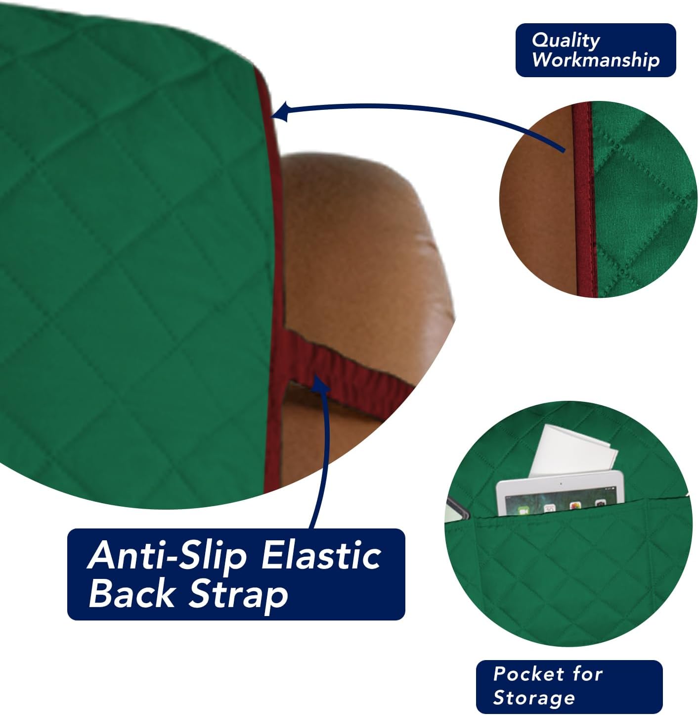 PureFit Reversible Quilted Sofa Cover, Water Resistant Slipcover Furniture Protector, Washable Couch Cover with Non Slip and Elastic Straps for Kids, Dogs, Pets (Oversized Recliner, Green/Red)