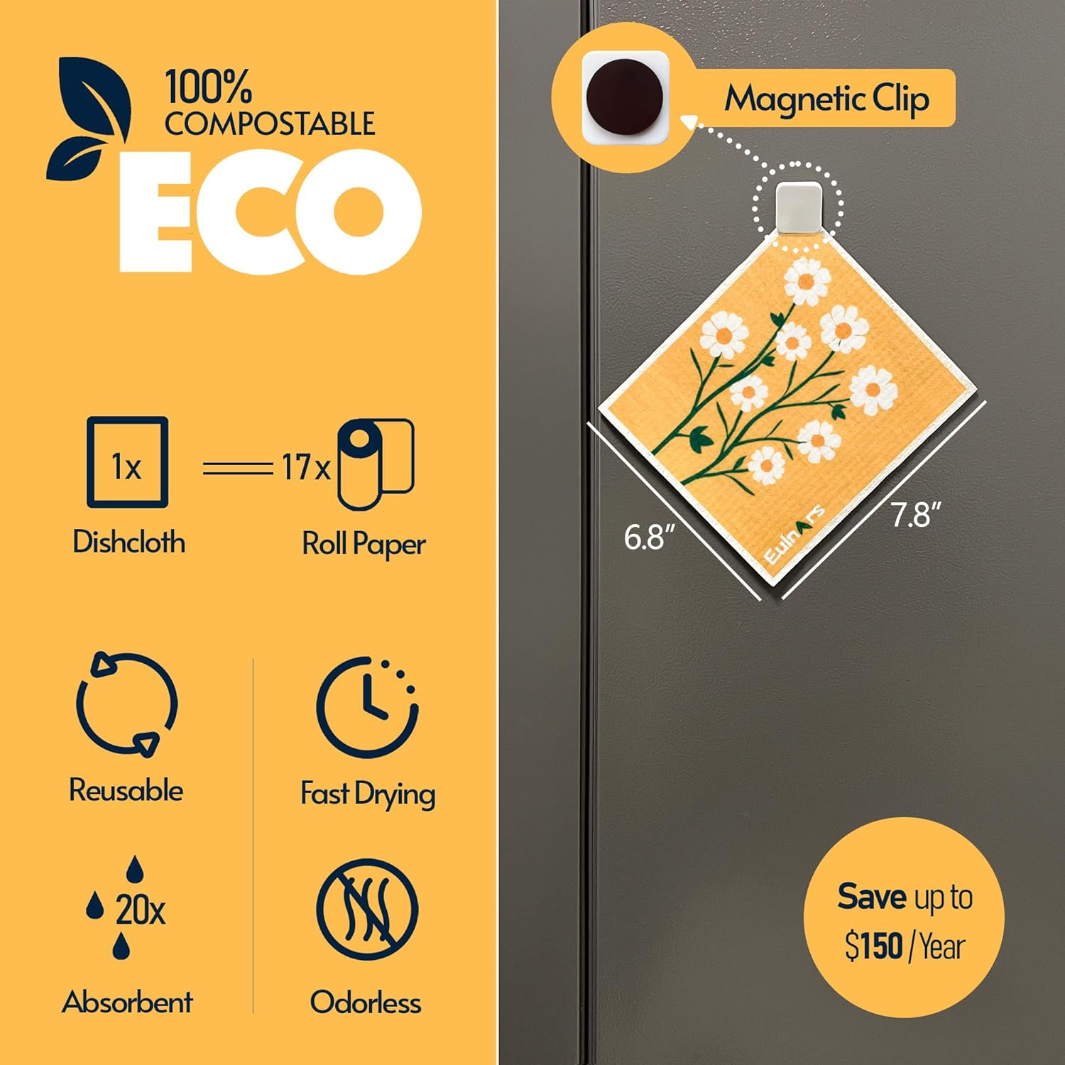 • Washable and Resuable: Tested to be reusable up to 200 times, our swedish dish cloths for washing dishes can replace up to 17 rolls of paper towels. Affordable, durable, and easy to care for, they offer a long-lasting alternative to disposable paper towels