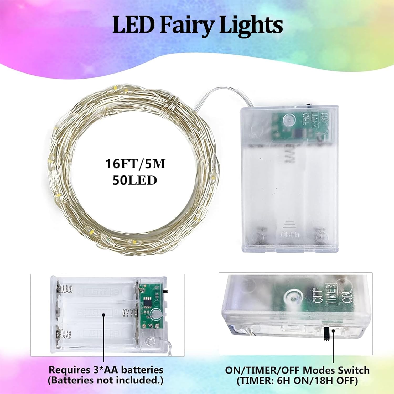 • Ultra-Bright and Durable Battery Fairy Lights: Designed with ultra-bright LEDs and durable silver wire, these battery-operated lights are built to last and make an excellent choice for decorating bedrooms, centerpieces, balconies, decks, and porches. Each set includes 4 strands of lights, each 16ft long with 50 LEDs, powered by 3 AA batteries (not included)