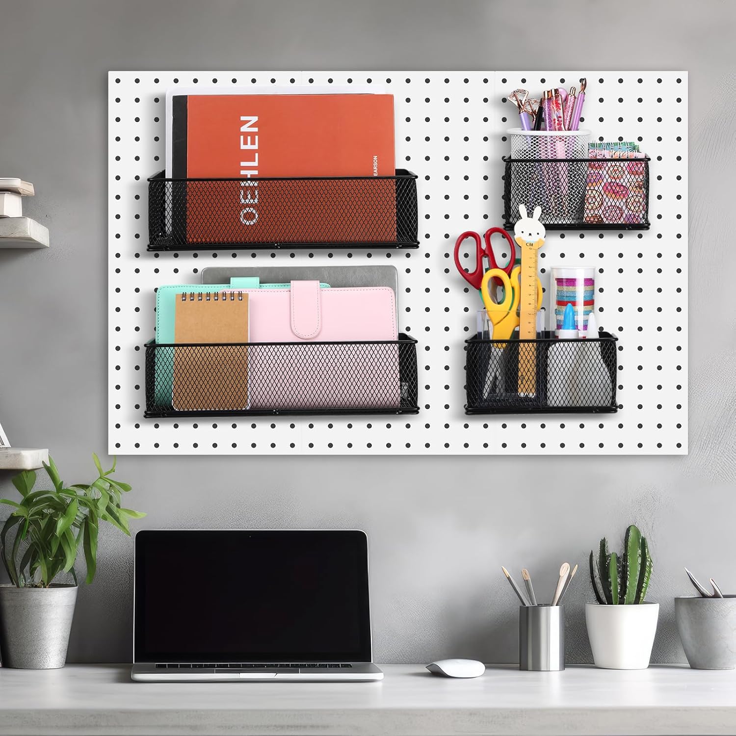 • Multiple Storage Purposes: these peg board baskets can be applied in garage, countertops, kitchens, basements, worktables, warehouses, stores and other places, suitable for storing and displaying tools, brushes, utensils, cables, etc., can be well implemented in storage and finishing, easy to use