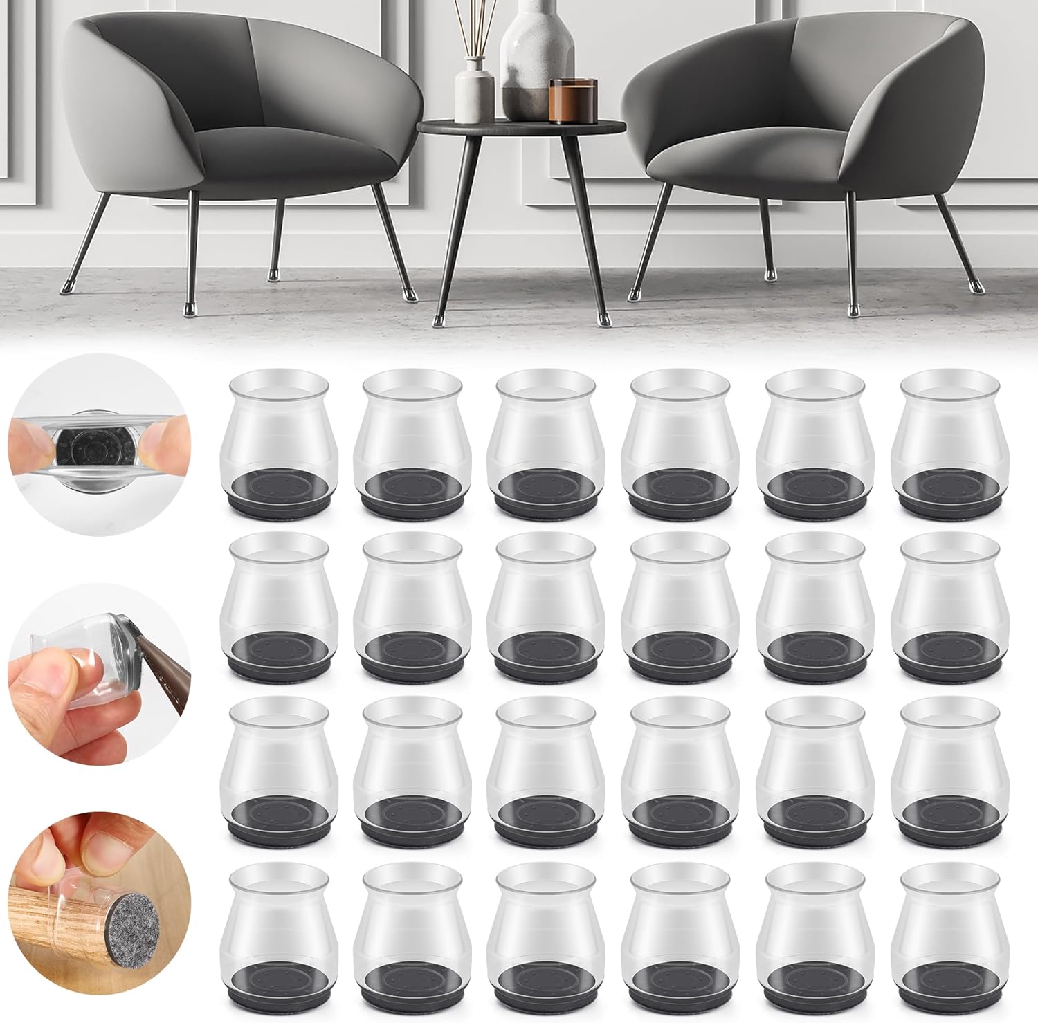 24PCS Upgraded Silicone Chair Leg Floor Protectors for Hardwood Floors, Furniture Sliders for Chair Legs, Felt Bottom Furniture Pads, Anti-Slip Round&Square Cap Covers to Scratch and Reduce Noise
