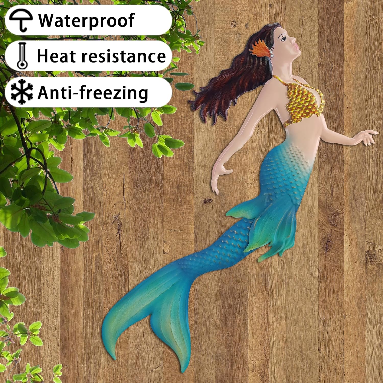 • Product Details - You will get 1 piece mermaid decoration - Measures 14.9 x 11.4 inches. The vivid metal wall decor matches is perfect for any decor style and can be displayed in bedroom, living room, office, study, baby room, kitchen, yard, porch, patio, garden and more