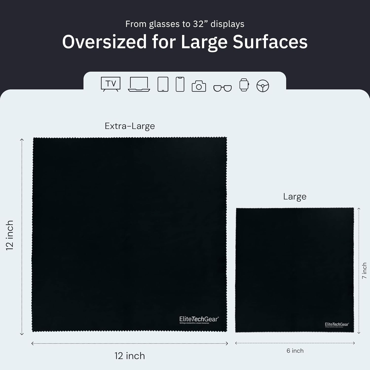 • Innovative Cleaning Solution: Elite Tech Gear's oversized black microfiber cleaning cloths ensure efficient removal of dirt and smudges. These microfiber eyeglass cleaning cloths enhance clarity for glasses and electronic devices alike