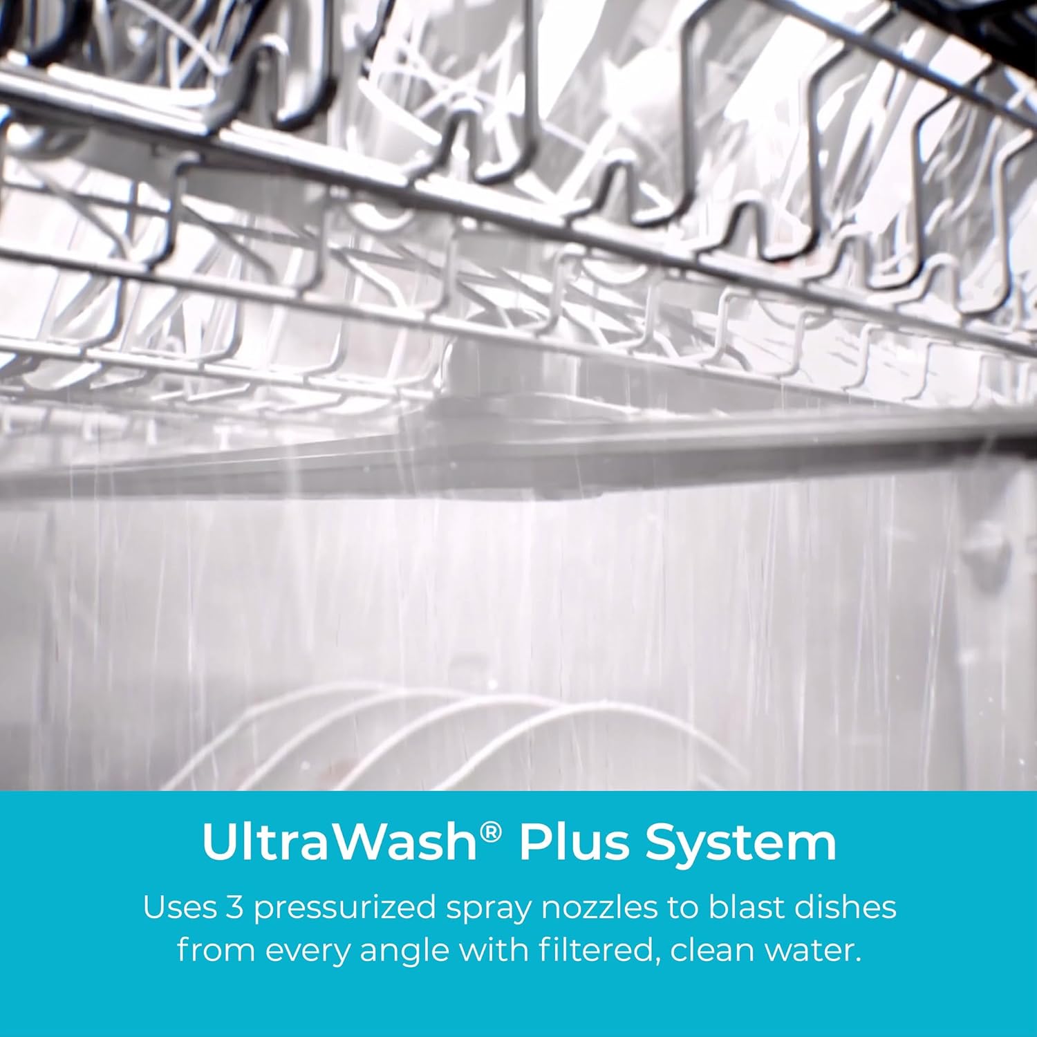 • UltraWash Plus Power Cleaning: 3 pressurized spray arms clean dishes from every angle using fresh, filtered water. Accela Wash cleans fast when you're in a hurry. Sani Rinse option gets dishes seriously clean and sanitized