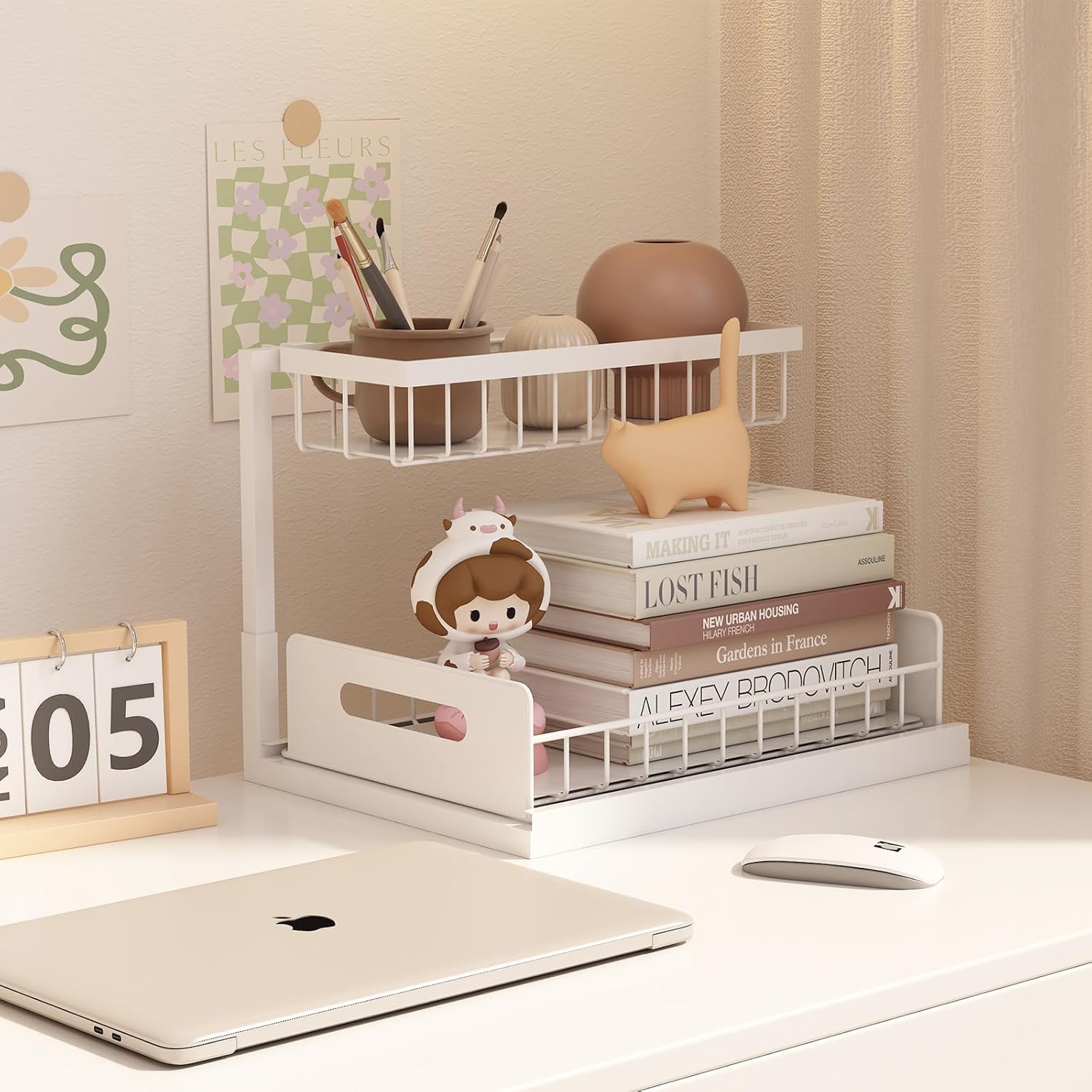 • [Space Saving] Organize the space under your cabinets with this 2-tier under sink storage. This under the sink organizer can solve your under cabinet storage troubles and increase the utilization of limited sink space. With pull out cabinet organizer, you have room for all your stuff, and a slide-out system like this makes it easier to access everything you store under the sink