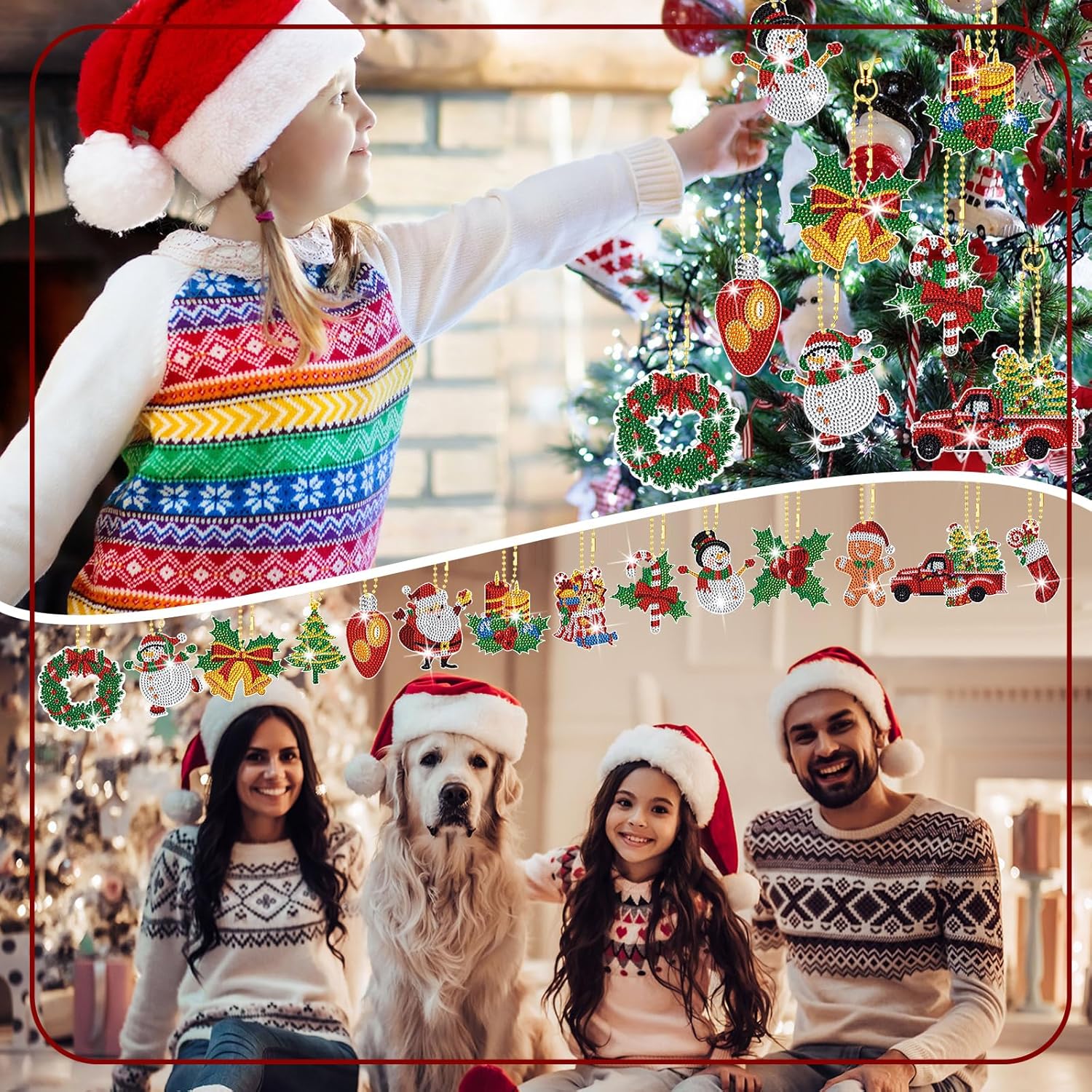 Equsion 14 Pcs Diamond Art Christmas Ornaments Christmas Diamond Painting Keychains Kits 5d DIY Hanging Double Sided Diamond Art Key Ring Painting Key Chain Family Decor Rhinestone Pendant