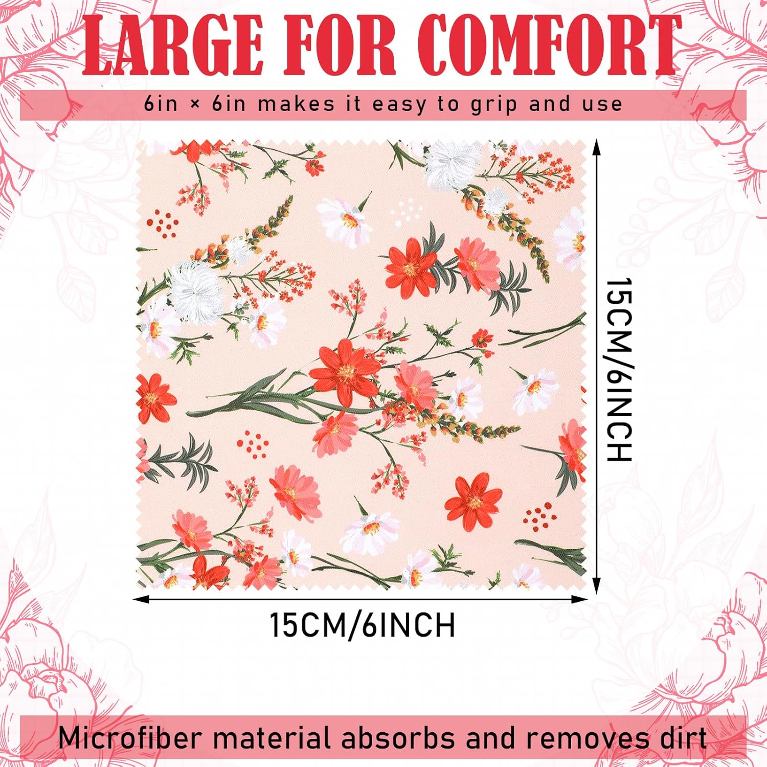 Sinmoe 20 Pcs Microfiber Cleaning Cloth Elegant Flower Design Microfiber Cloth Soft Multicolor Glasses Cleaner for Eyeglasses Camera Lens Cell Phone Screens Glasses, 6 x 6 Inches