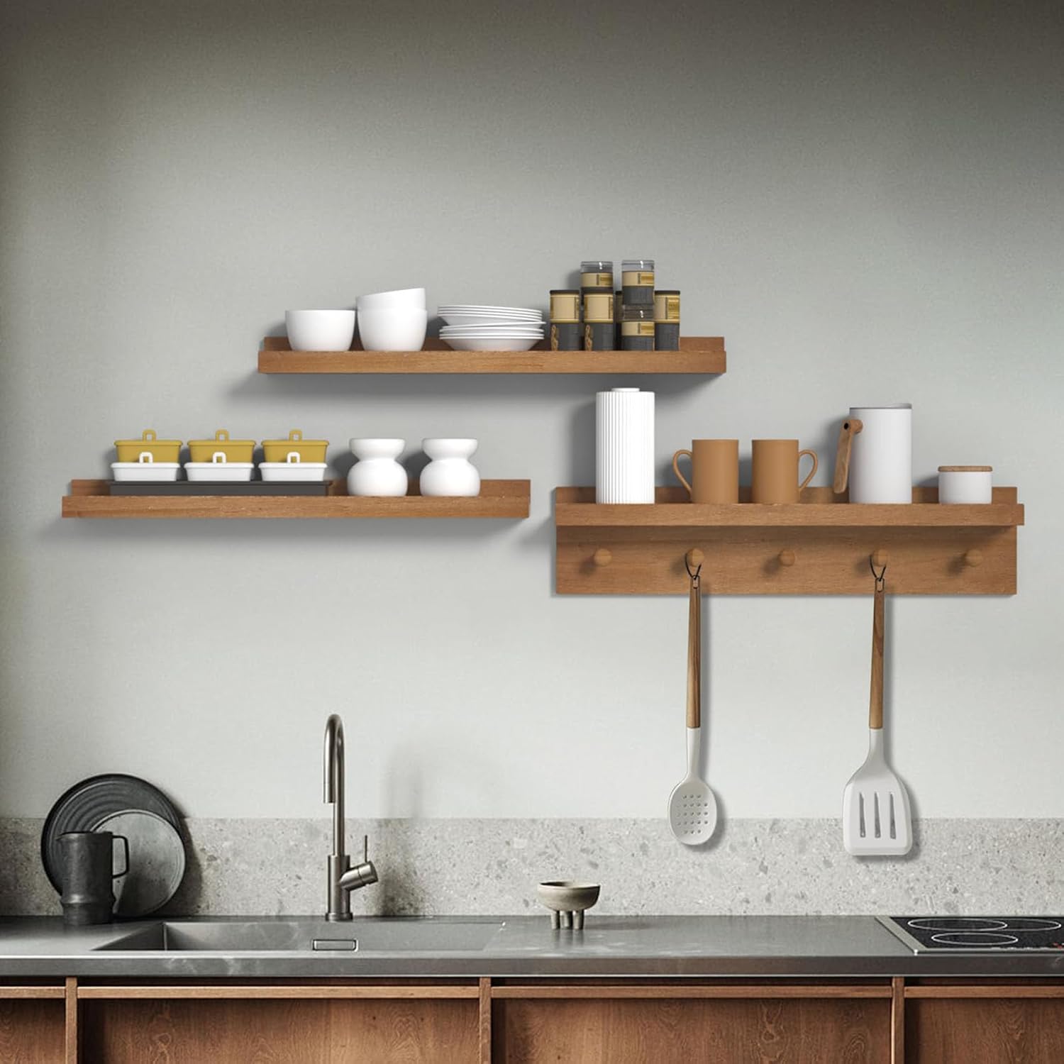 • Customizability: A set of 3 picture ledges, including floating shelves with hooks and photo ledge shelf, can be easily cut and adjusted to fit different sizes and shapes, catering to specific spatial requirements.