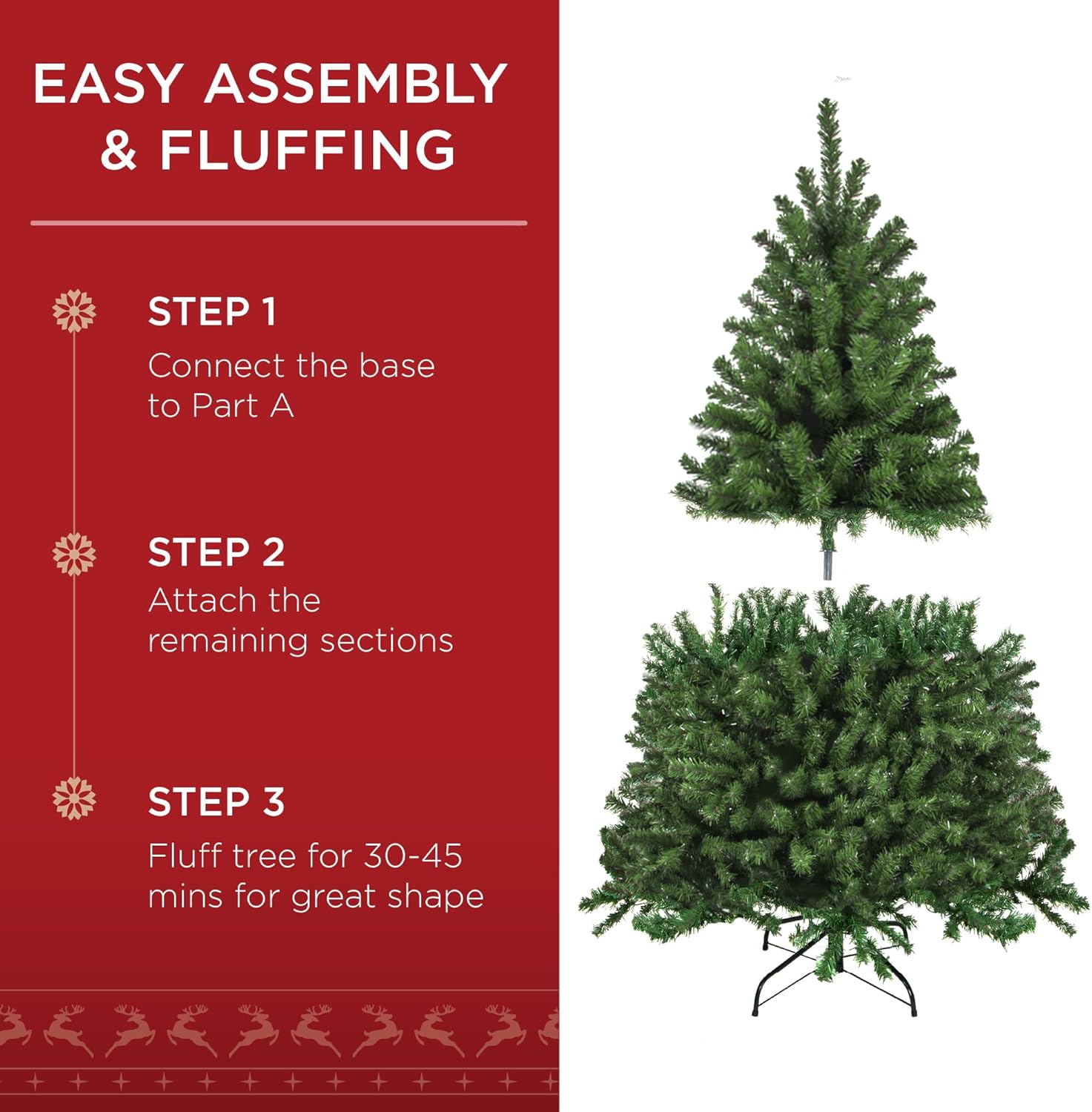 • EASY ASSEMBLY & FLUFFING: Put the tree together in just three steps: simply unfold the metal stand and stack each section from largest to smallest, then fluff and enjoy! Fluff Time (4.5ft/6ft/7.5ft/9ft/12ft): Approximately 15-30 min/ 30-45 min/ 45-60 min/ 1-1.5 hrs/ 1.5-2 hrs