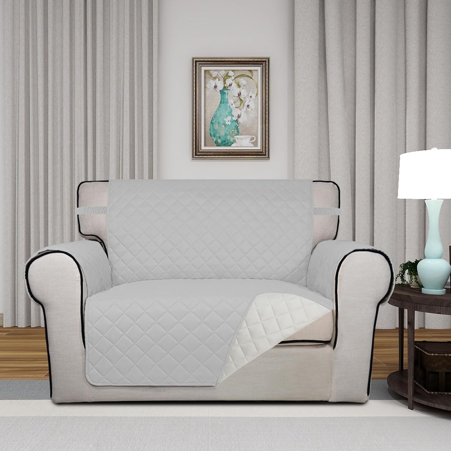 PureFit Reversible Quilted Sofa Cover, Water Resistant Slipcover Furniture Protector, Washable Couch Cover with Non Slip and Elastic Straps for Kids, Dogs, Pets (Oversized Chair, Light Gray/Ivory)