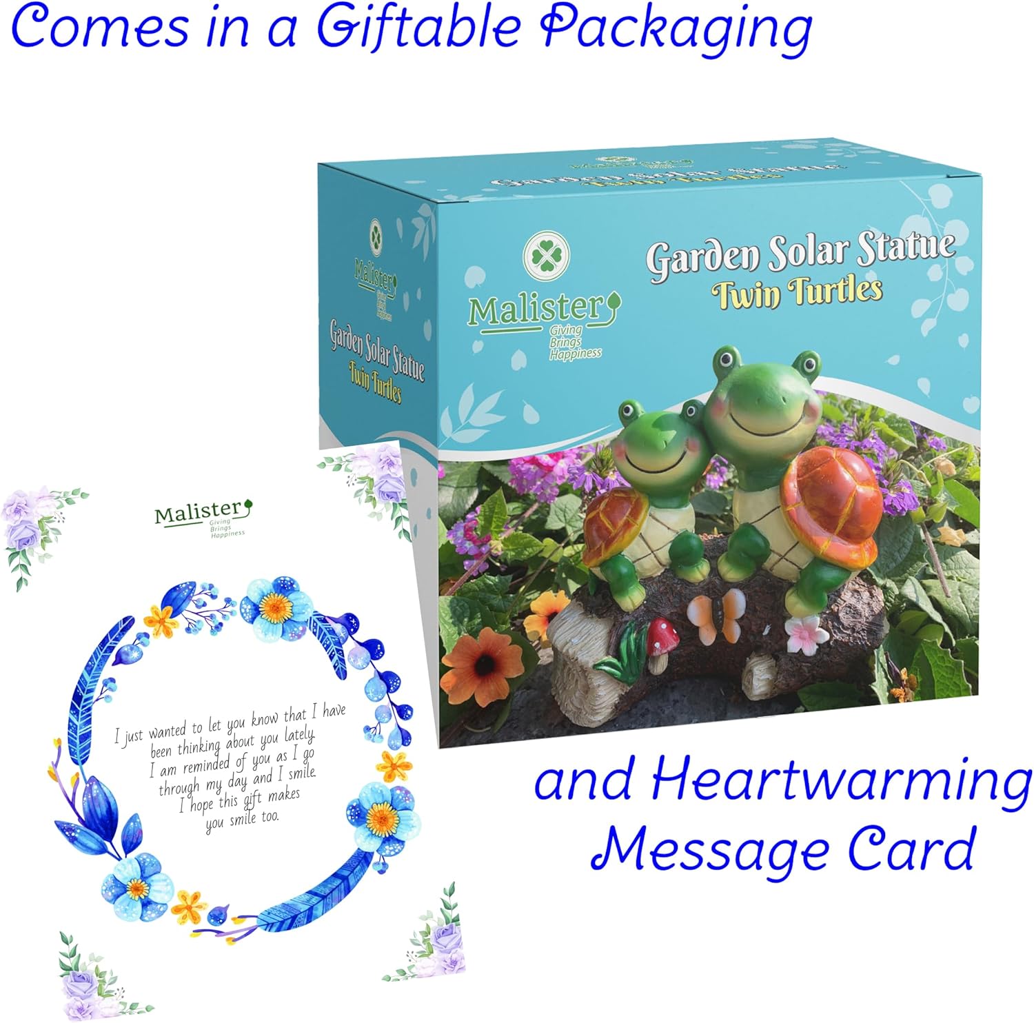 Malister Garden Turtle Figurines Outdoor Decor - Outdoor Statues with Solar LEDs for Patio Decor, Spring Summer Fall, Garden Art Outdoor Lawn Yard Art Gift, Statue Housewarming Gifts