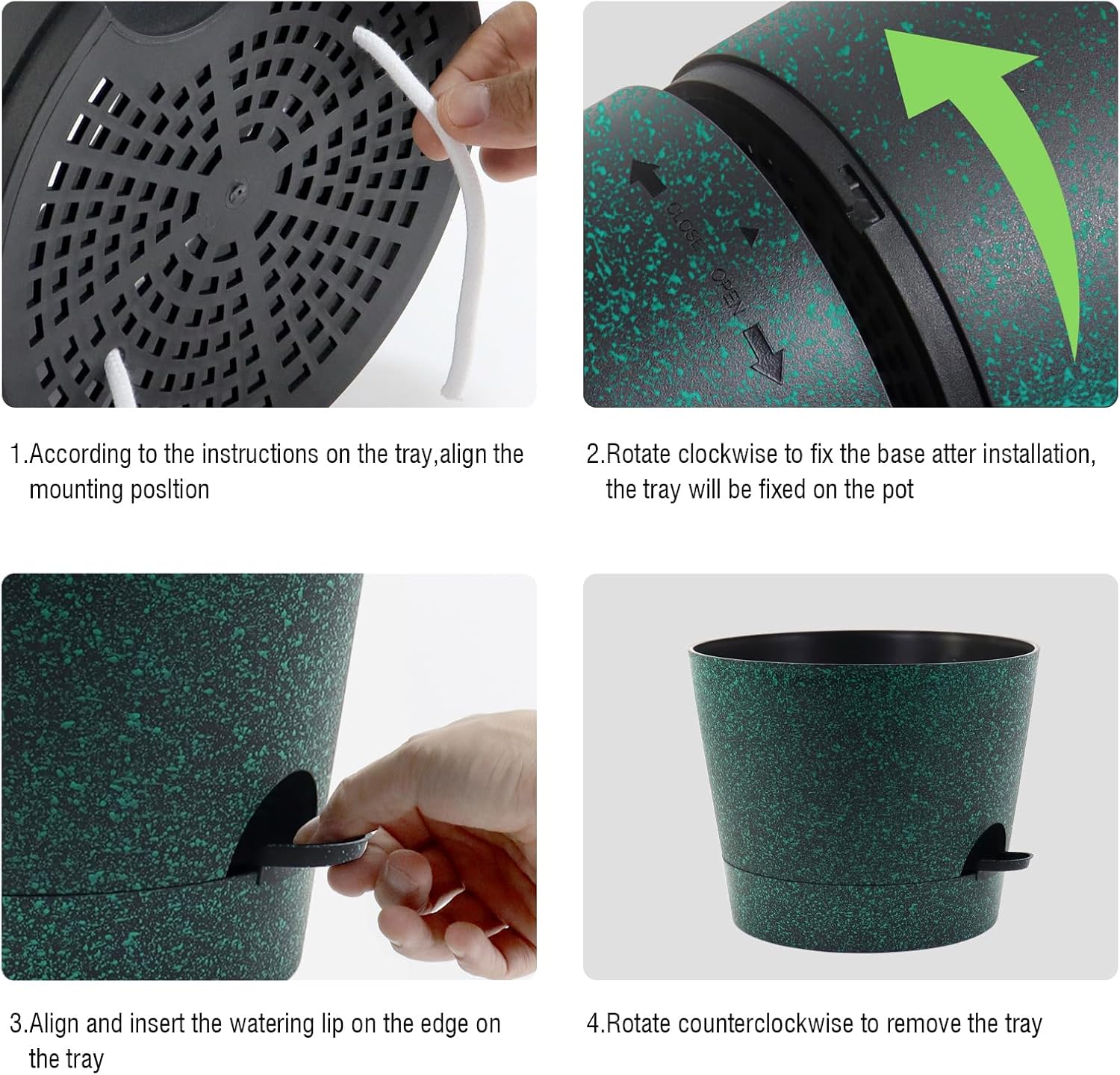 • Self-Watering Planter Allows 15+ Days Watering-Free: This plant pot with deep reservoir can store 60 oz water in the bottom, not only to catch drainage but also to "auto-water" your plants by the wick. Keep your plants watered for 2-3 weeks until the next watering.And Self water regulation allows you no more strugglling with over watering.Go on a vacation with no worries about plants will be dried up.
