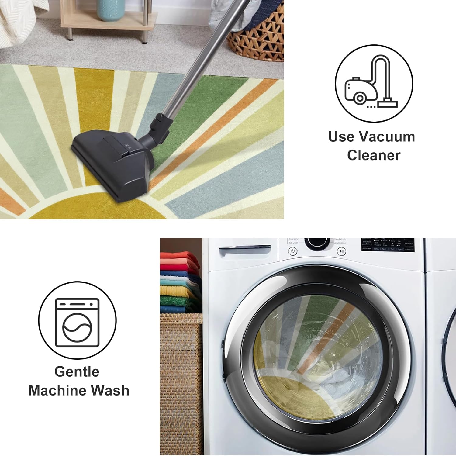 • Pattern Design:The 5x7 kids rugs features a lovely colorful sun pattern. As a home decor, it creates a warm and lively atmosphere and light up your home.