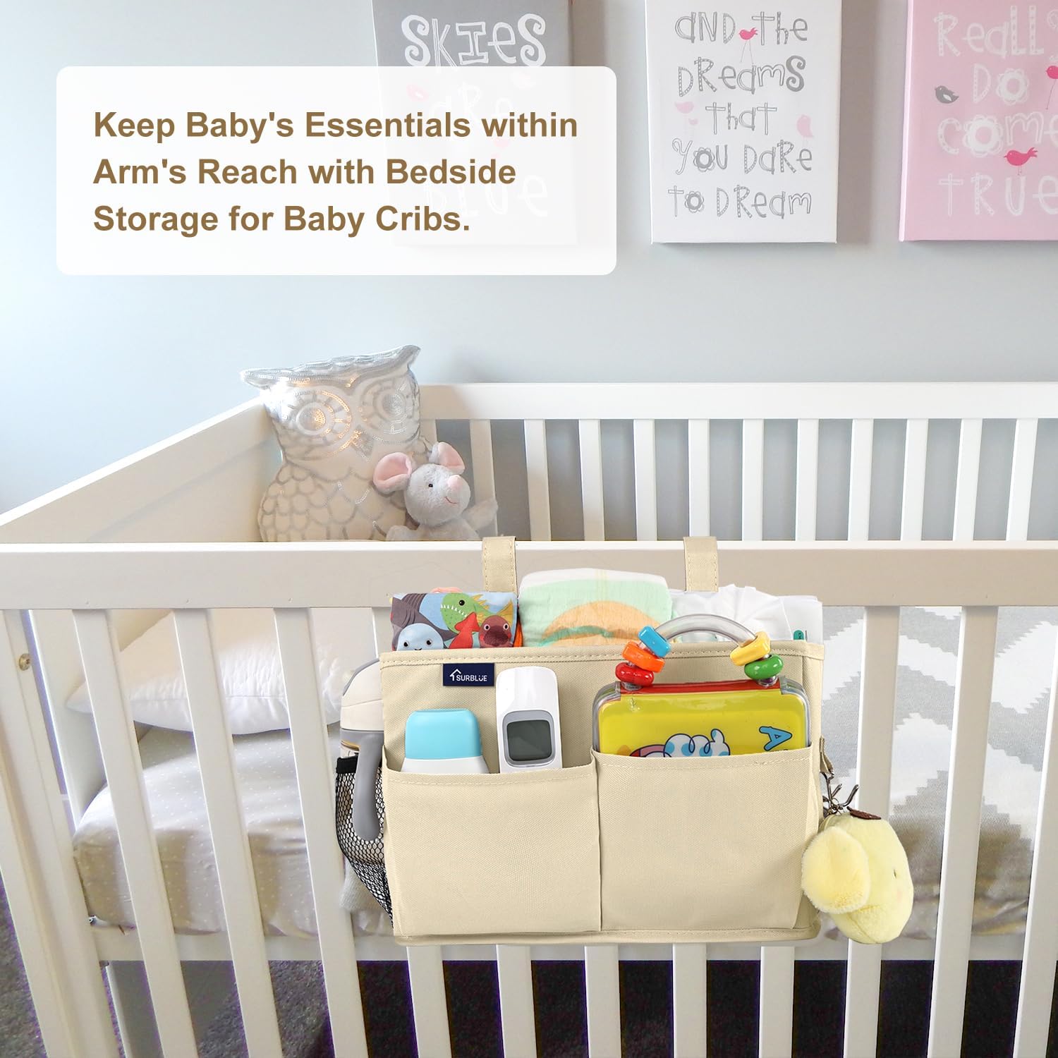 Surblue Bedside Caddy Hanging Organizer Storage Bag Pocket for Bunk, Hospital, College Dorm Rooms, Baby Bed Rails, Camp - 8 Pockets, Large, Beige