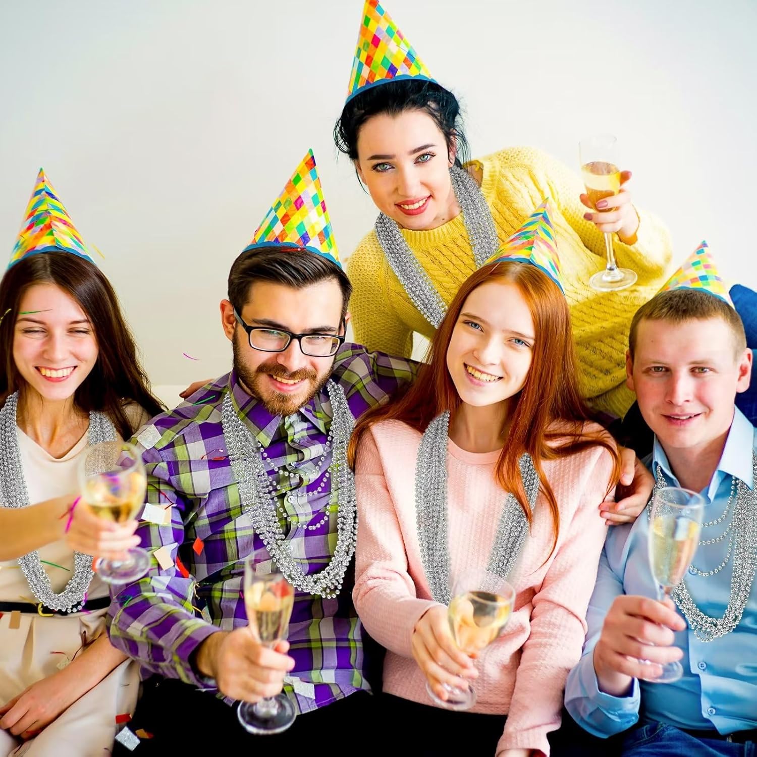 50PCS Bead Necklace, Silver Christmas Bead Stuff Party Favors, 33" Xmas Necklaces Women and Men, Festival Events Parade Throw Accessories for Wedding Birthday Celebrations Decorations