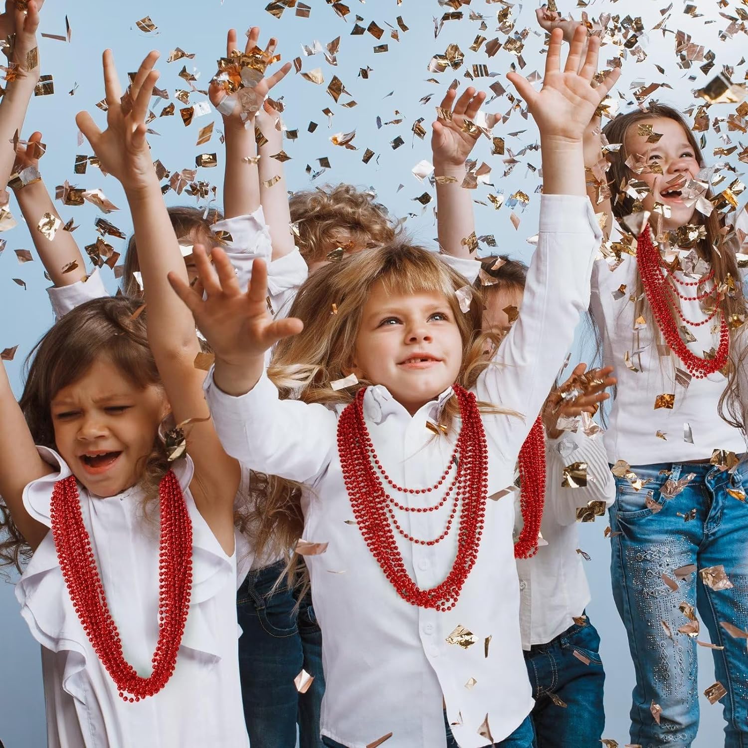 50PCS Bead Necklace, Red Christmas Bead Stuff Party Favors, 33" Necklaces Festival Parade Throw Accessories for Wedding Birthday Valentines Mardi Gras Christmas Celebrations Decorations