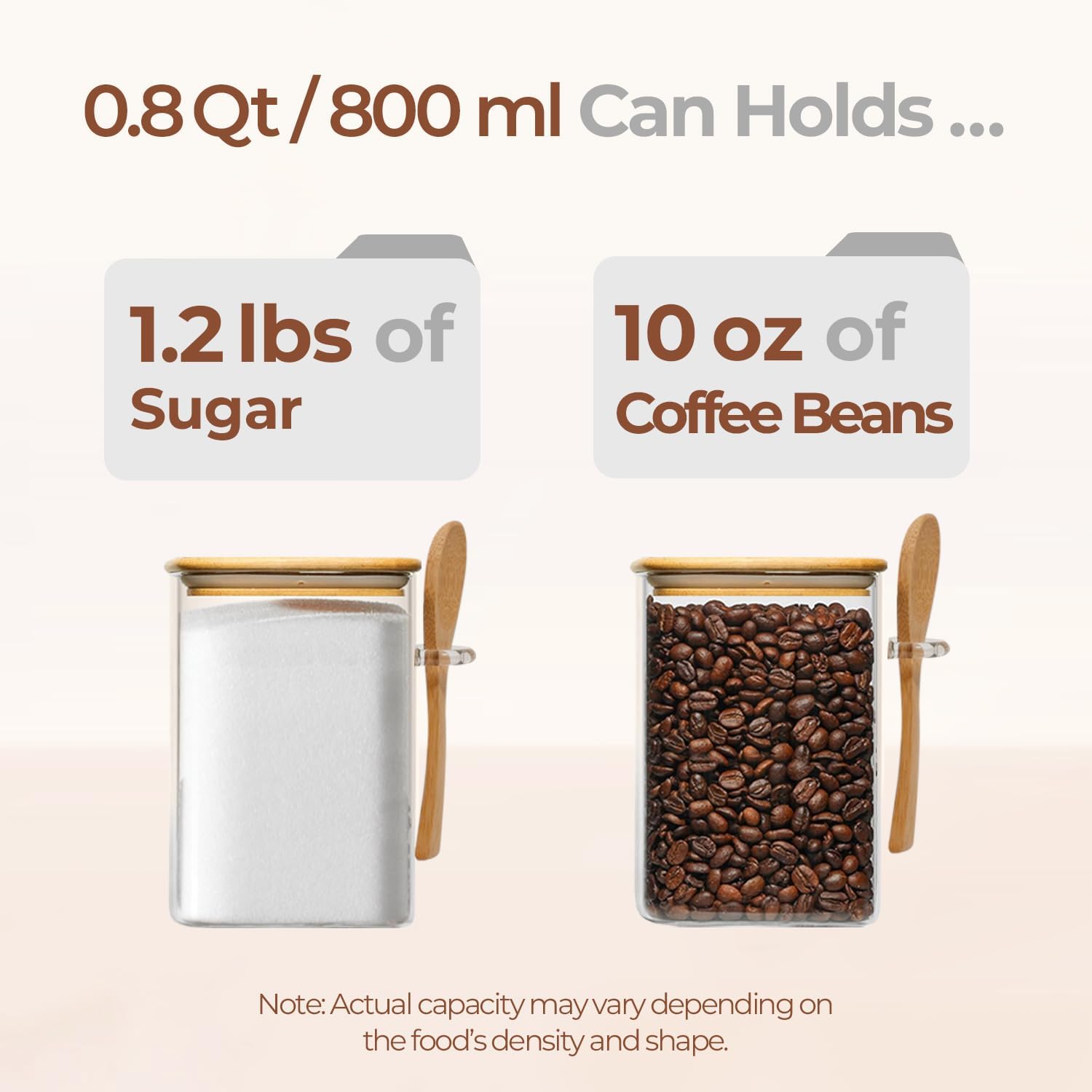 • Convenient and Versatile: The transparent glass of our square glass jar provides a clear view of the contents, making it perfect for storing various food like, pasta, oats, flour or tea, especially for coffee beans and sugar near your coffee machine; It will be a great addition to cocoa, hot chocolate, coffee bar; With the included spoon, it's easy to scoop and use your stored items efficiently, even for bath salt or tea storage