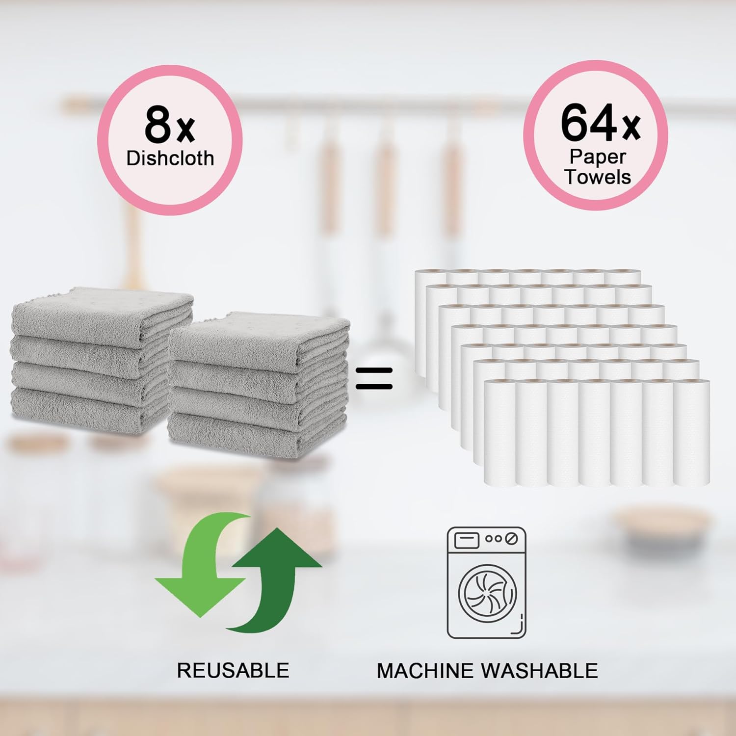 kimteny Kitchen Cloth Dish Towels, 13x28 Inches Premium Dishcloths, Super Absorbent Coral Velvet Microfiber Cleaning Cloths, Fast Drying Rags for Washing Dishes (13x28-8 Pack, Grey)