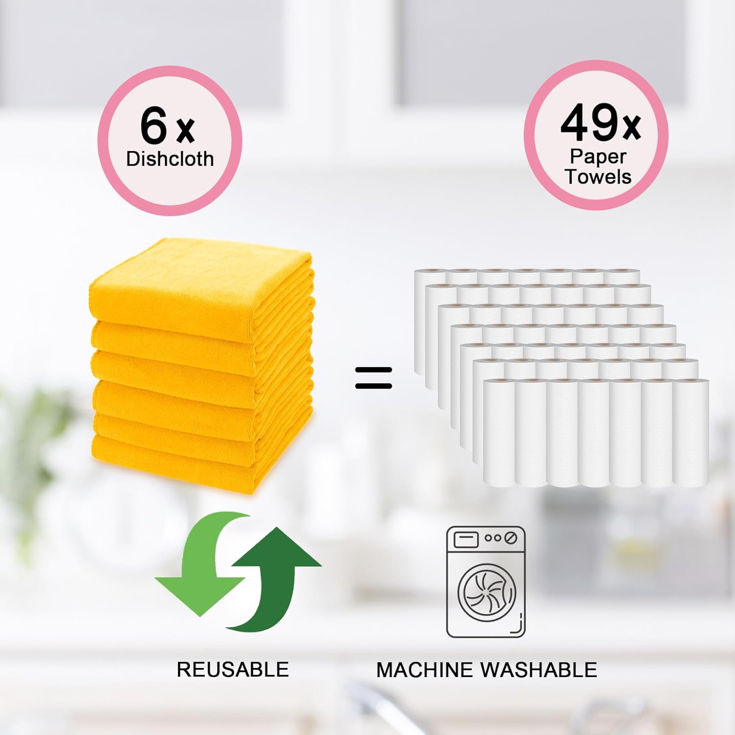 • COUNTLESS USES - Due to being highly absorbent, these microfiber dish towels are great for dust cloths, drying hands, wiping stains, cleaning windows, as well as cheese strainers, salad spinners, a wide variety of household chores. As good as having a magic wand in your hands! Get the job done quickly in a right way with our dish cloths!