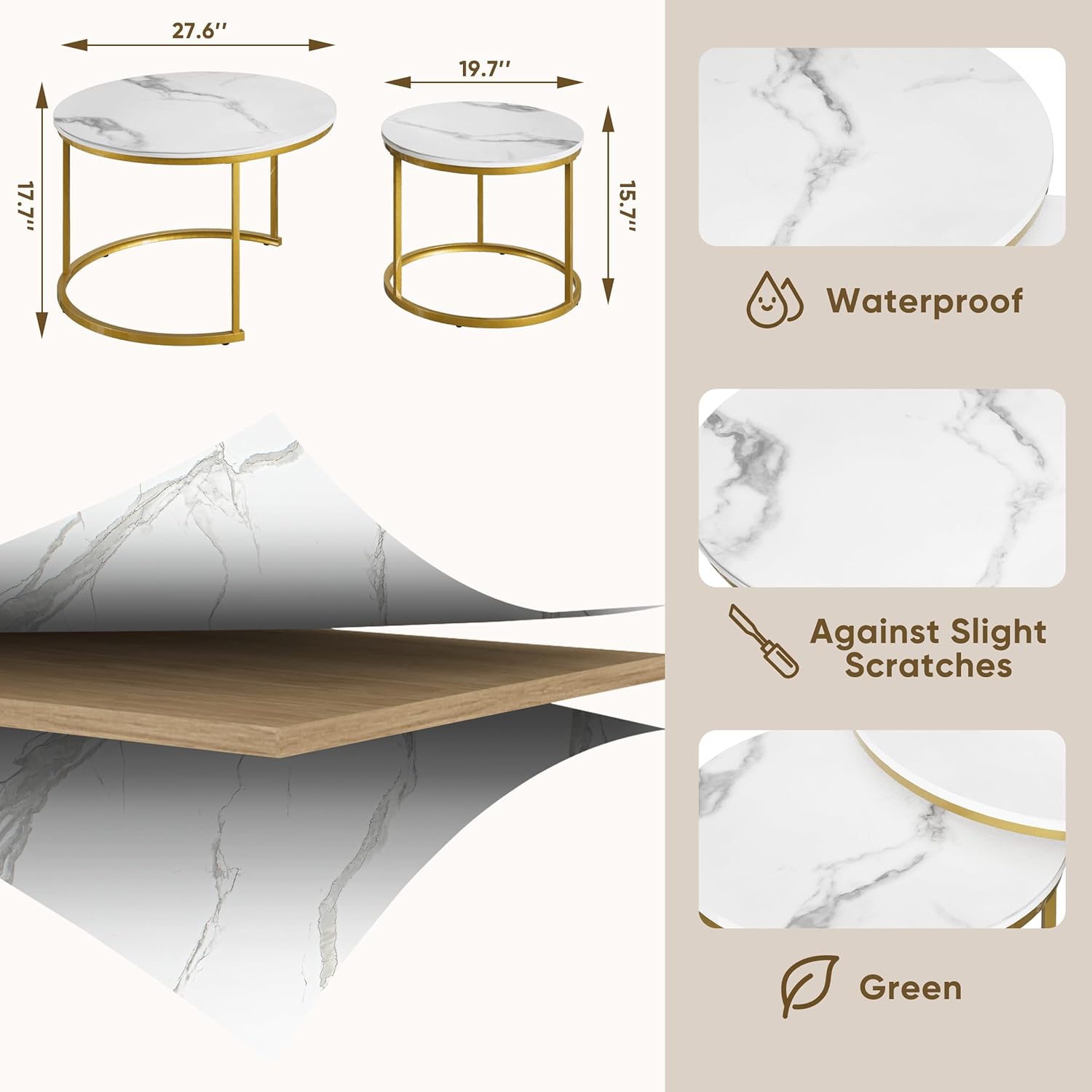 • 【Flexibility】Small Nesting Tables: 19.7"(D) x 15.7"(H), Large Nesting Tables: 27.6"(D) x 17.7". The nesting design of these coffee tables makes them highly flexible, allowing for quick retrieval when guests arrive and easy storage when not needed.