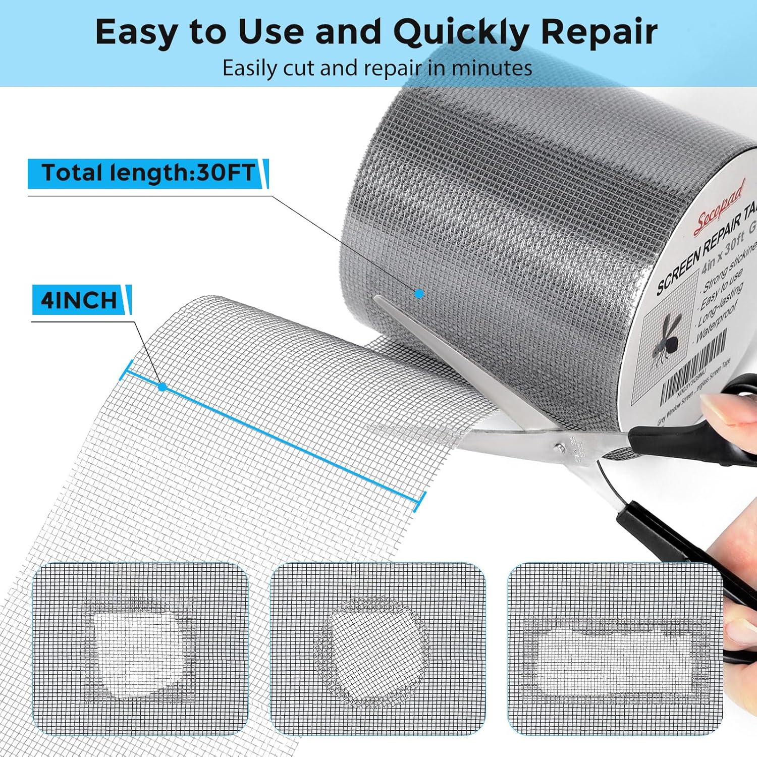 • Clippable and Save money: The size of the screen repair tape is 4 IN X 30 FT, you can cut a suitable size and shape or use more of them to repair a larger hole. No need to spend a lot to replace the entire screen mesh then