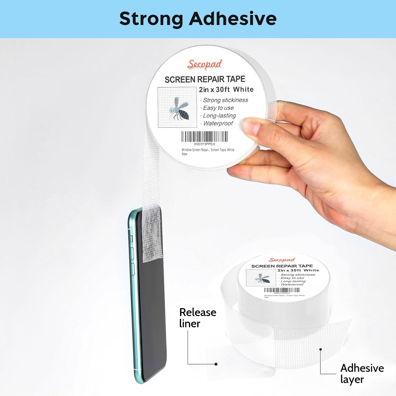 • Extra long and Save money: The size of the screen repair tape is 2 IN X 30 FT, you can use more of them to repair a larger hole. No need to spend a lot to replace the entire screen mesh then