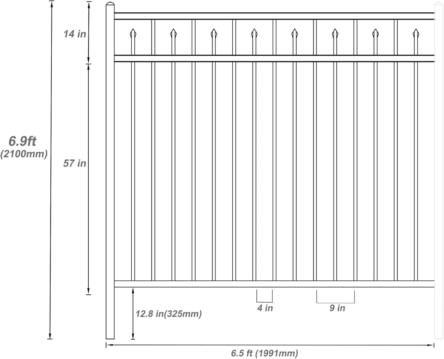 Galvanized Steel Fence Panel, 6ft H x 6.5ft W, Decorative DIY Installation for Outdoor Garden, Wrought Iron Style, Black