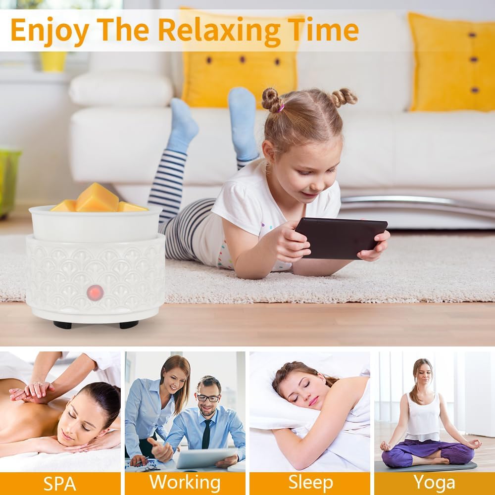 • 【Energy Saving& Safe】 Experience a safer and cleaner alternative to traditional candles. This ceramic wax melt warmer offers a flameless, soot-free, and pollutant-free way to enjoy your favorite scents.