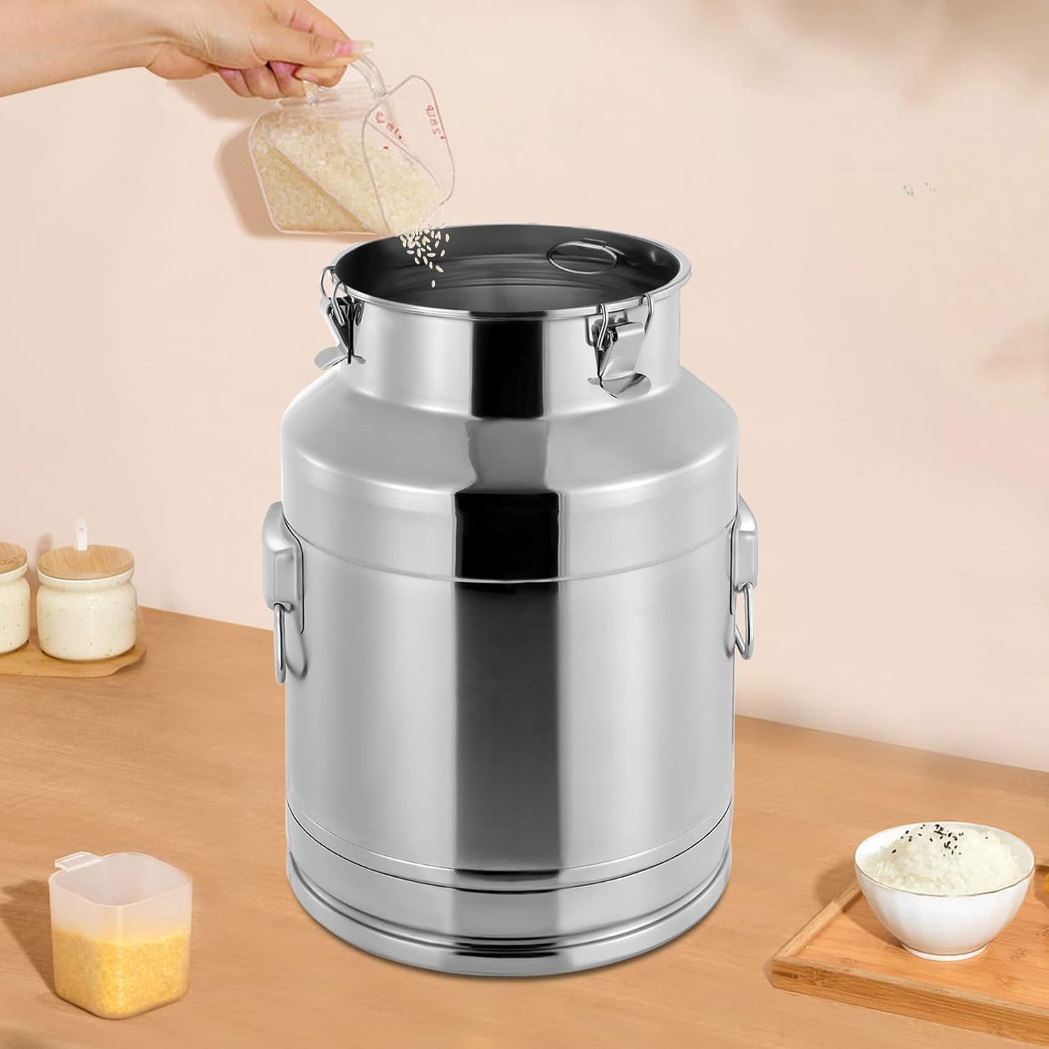 • LONG SERVICE LIFE MILK BUCKET - The storage bucket comes with a welded handle, which is very stable and makes it easier to use. The bottom of the can is heightened to prevent the bottom of the can from directly rubbing against the ground or the tabletop. The design is also convenient for the entire bucket to be lifted and poured.