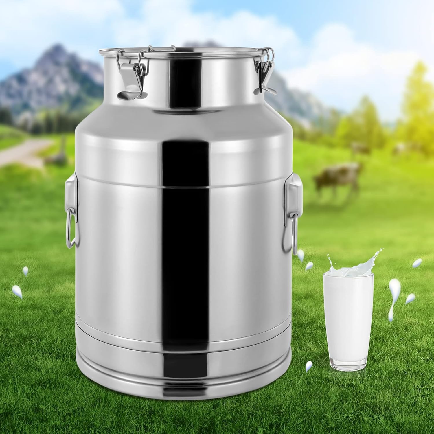 • STAINLESS STEEL MILK CAN - This milk can with a lid is made of 304 stainless steel, which can effectively prevent rust and corrosion, and the surface is polished, which is smooth and comfortable to the touch, not prone to scratches and dents, and has a beautiful appearance.