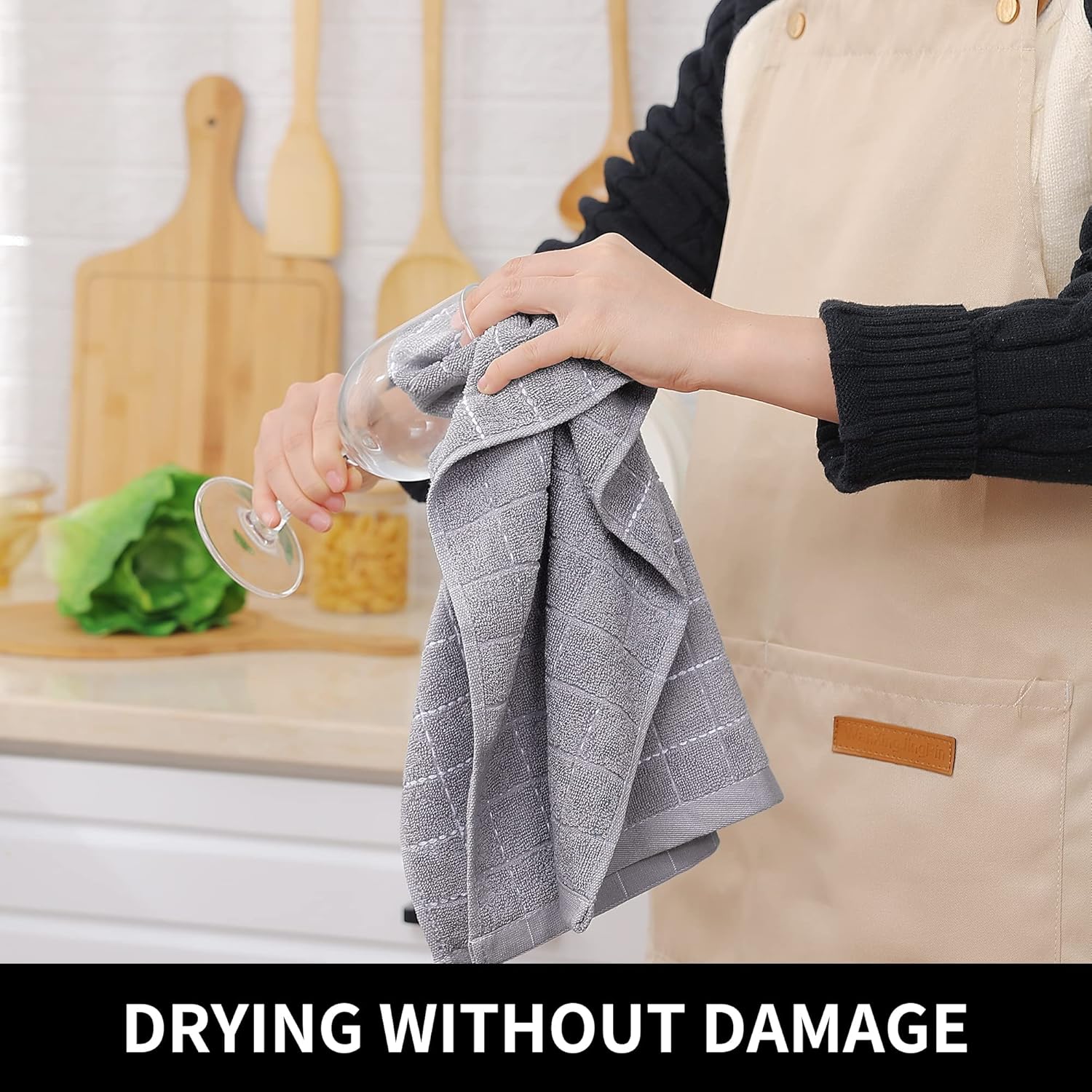 Homaxy 100% Cotton Terry Kitchen Towels(Light Grey, 13 x 28 inches), Checkered Designed, Soft and Super Absorbent Dish Towels, 8 Pack