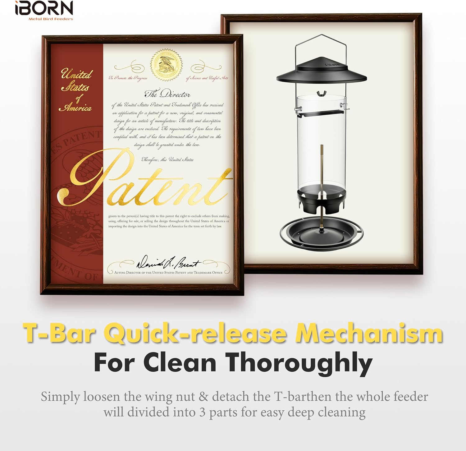 • 【2.2lb Large Capacity&Port Control Seeds Flow,Fill Once a Week】iBorn Large Capacity Bird Feeders For Outdoors Holds up to 2.2lb of seed,reduce the number of regular fills.With right size of each port control seeds flow into the tray.Reduce excess seeds waste and make it easier to fill once a week.