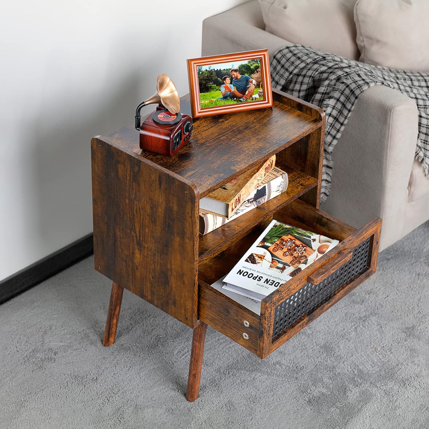 • [Handmade & Use Scenarios] The handmade solid wood legs and drawer handle retain the original grain of the wood. Being a bedside table is not the only role it excels in. It can be placed in the living room, bedroom, office and other small places. It can hold everything you need within reach. Let the charming little rattan side table be a part of your life.