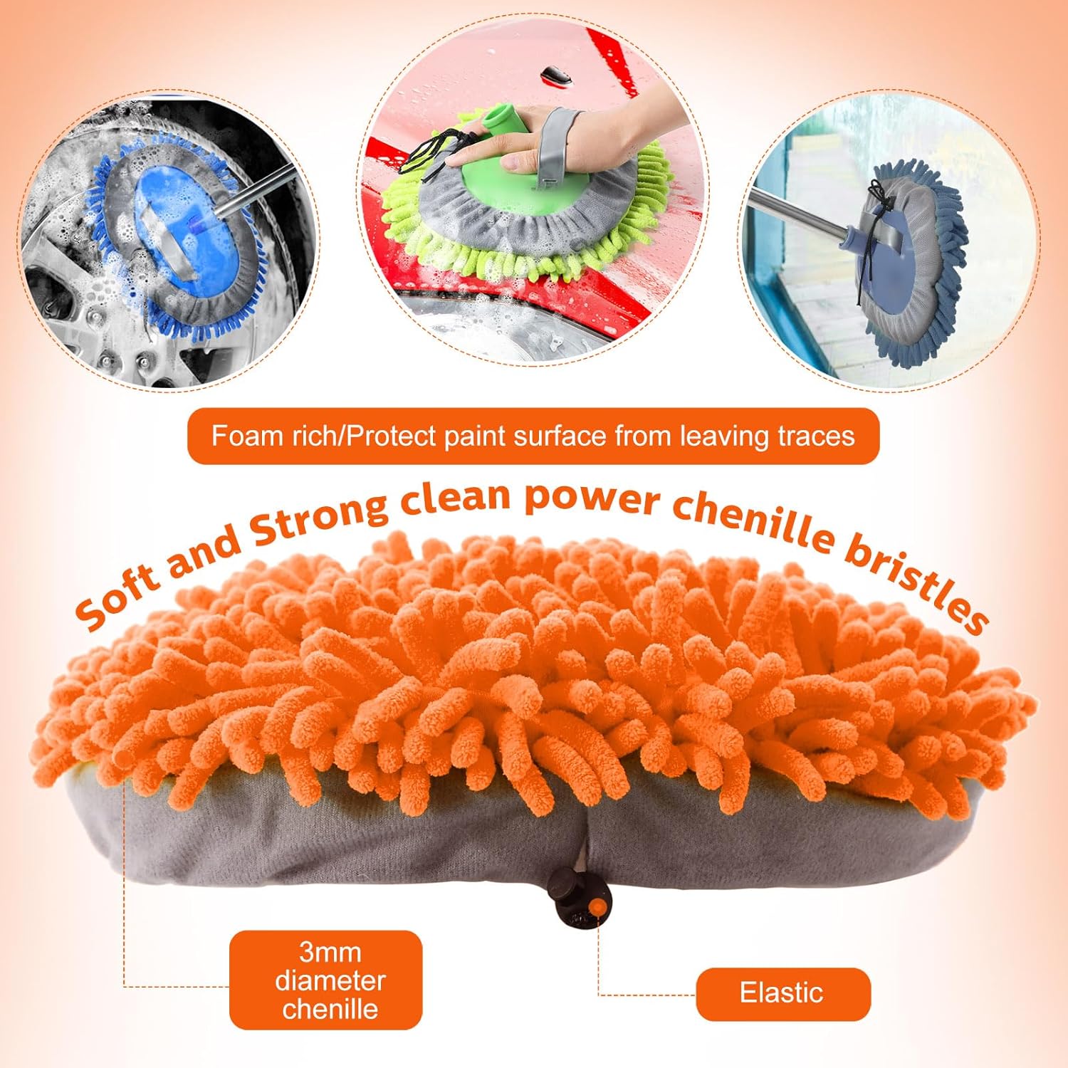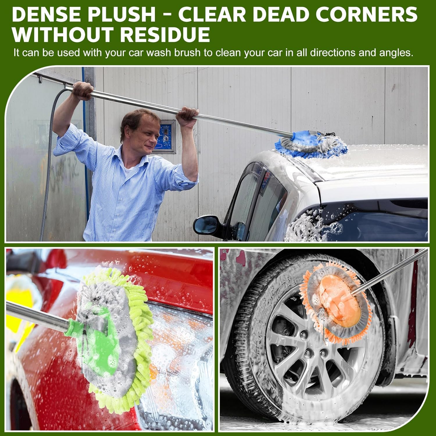 • Efficient Car Cleaning Solution: keep your car's finish looking nice with our microfiber car wash brush; The chenille scratch proof replacement heads securely attach to your mop handle to effectively but gently clean off dirt, dust, and debris from your vehicle's surface, preserving your car's paintwork