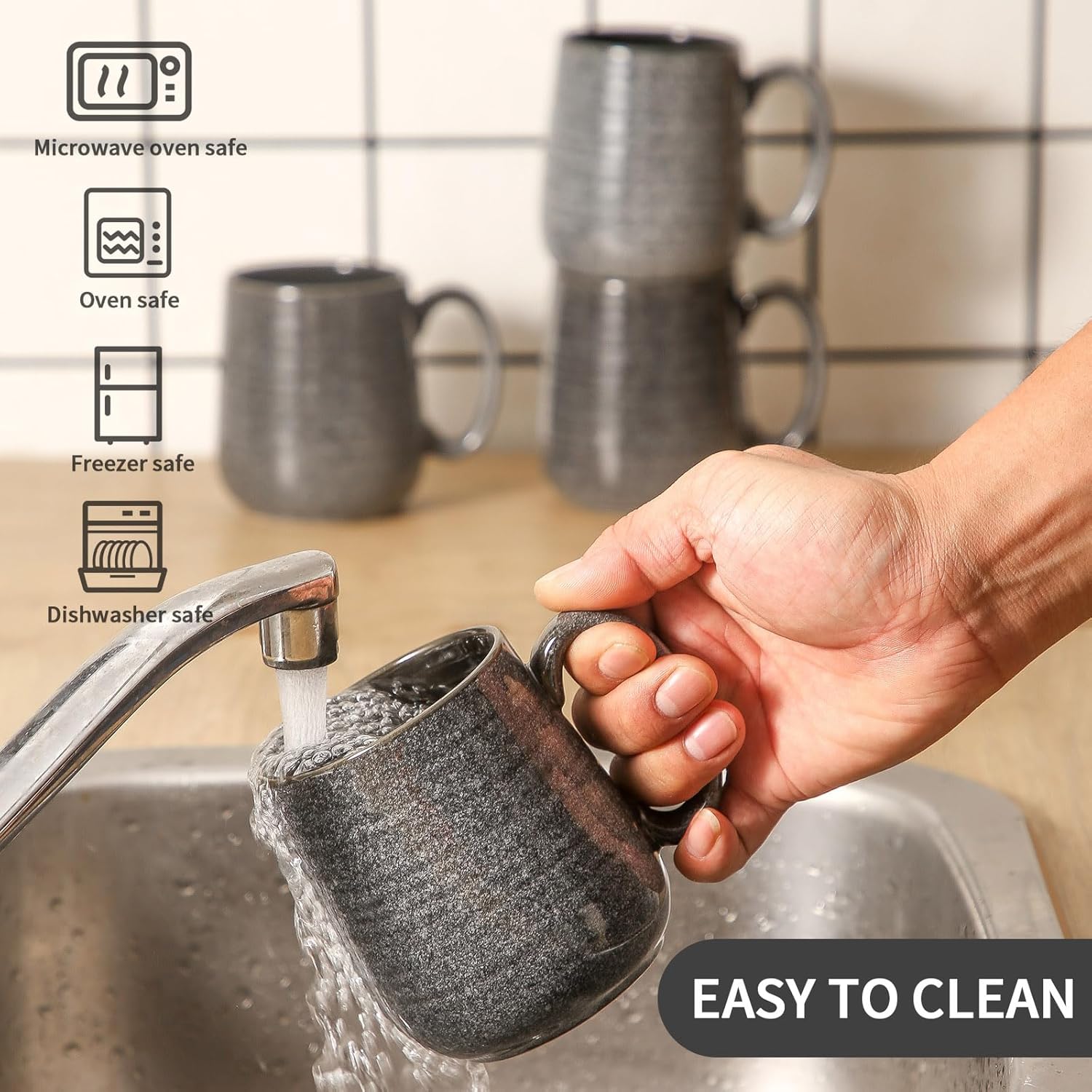 • Microwave And Dishwasher Safe: This grey coffee cup's versatility makes your life easier. Heat your beverages in the microwave and then effortlessly clean it in the dishwasher, saving you time and effort.