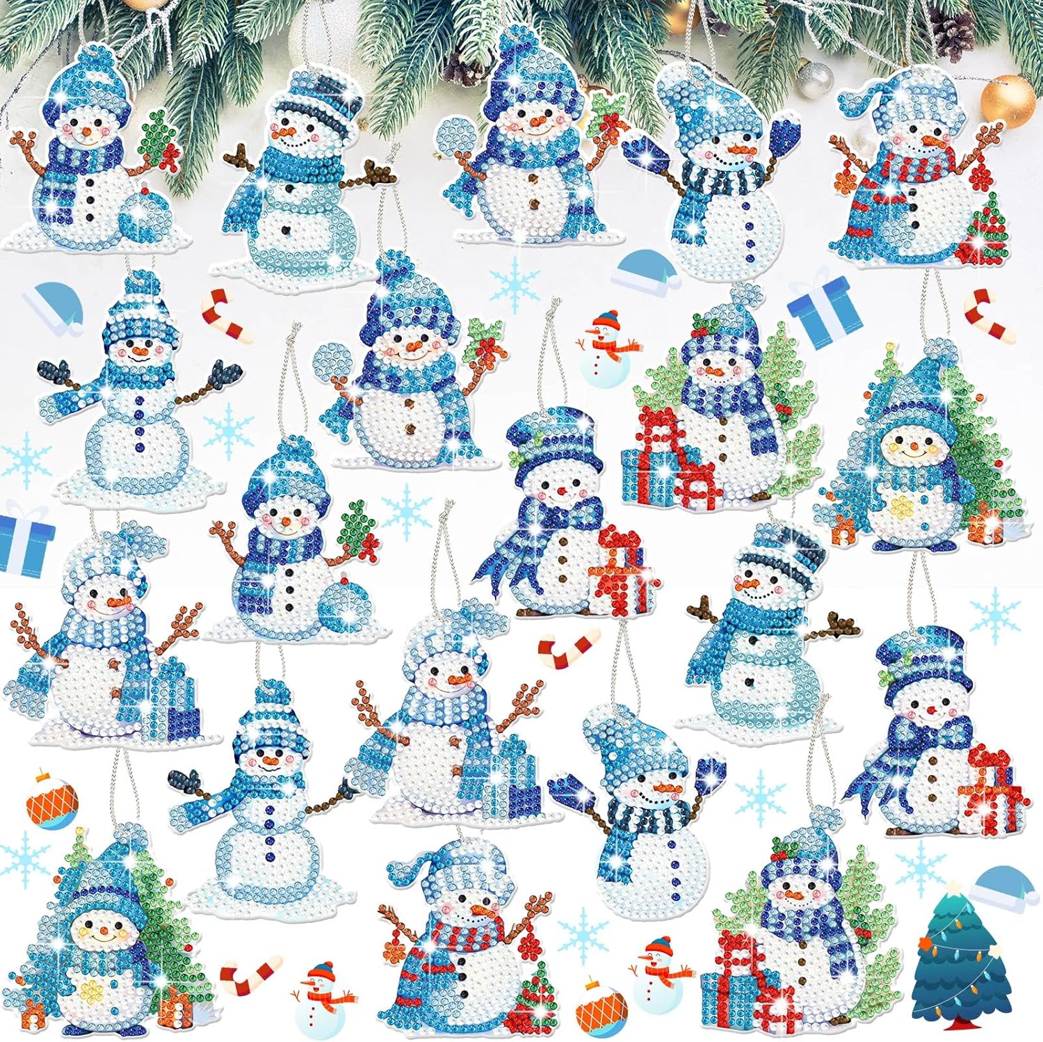 Skylety 20 Pcs Christmas Diamond Art Ornaments Kit Cute Snowman Diamond Painting Ornaments Tag DIY Xmas Rhinestone Art Keychain Crystal Handcraft Gift Wrap Tags with Rope Home Party Decor(Blue)