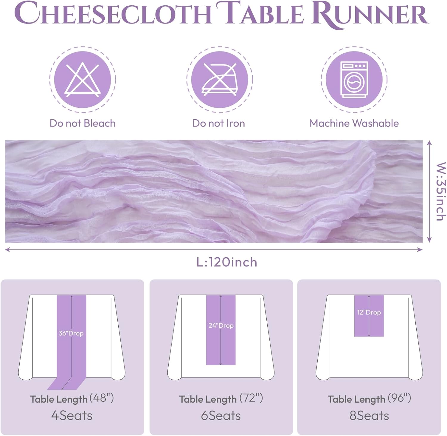 Sioloc 10 Pack Lilac Purple Lavender Cheesecloth Table Runner Fall Autumn Decor for Home 10ft Table Cloth for Tea Wedding Birthday Party Baby Bridal Shower Halloween Thanksgiving