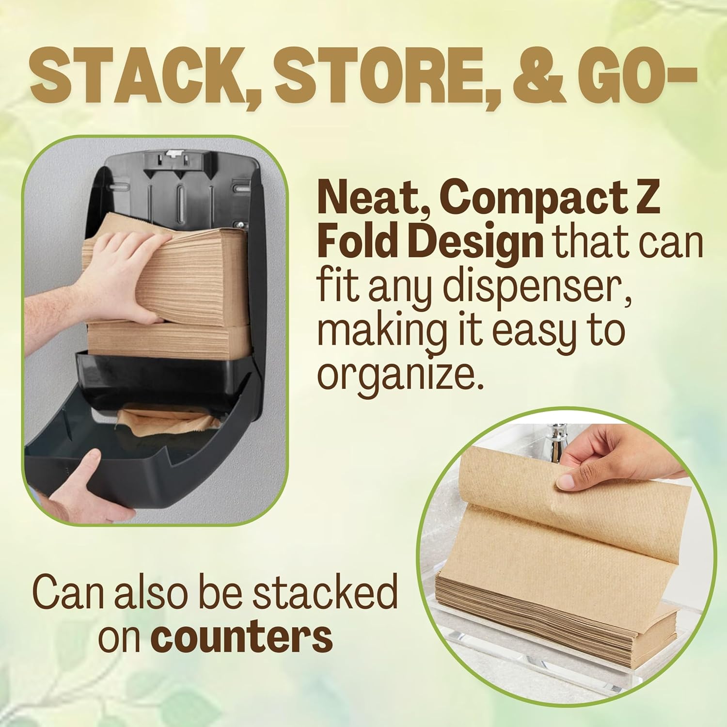 • Making the Right Choice: Our brown tri-fold paper towels are made from 100% post-consumer recycled paper and are completely unbleached—making them a smart, world-friendly alternative to traditional cloth or white paper towels.
