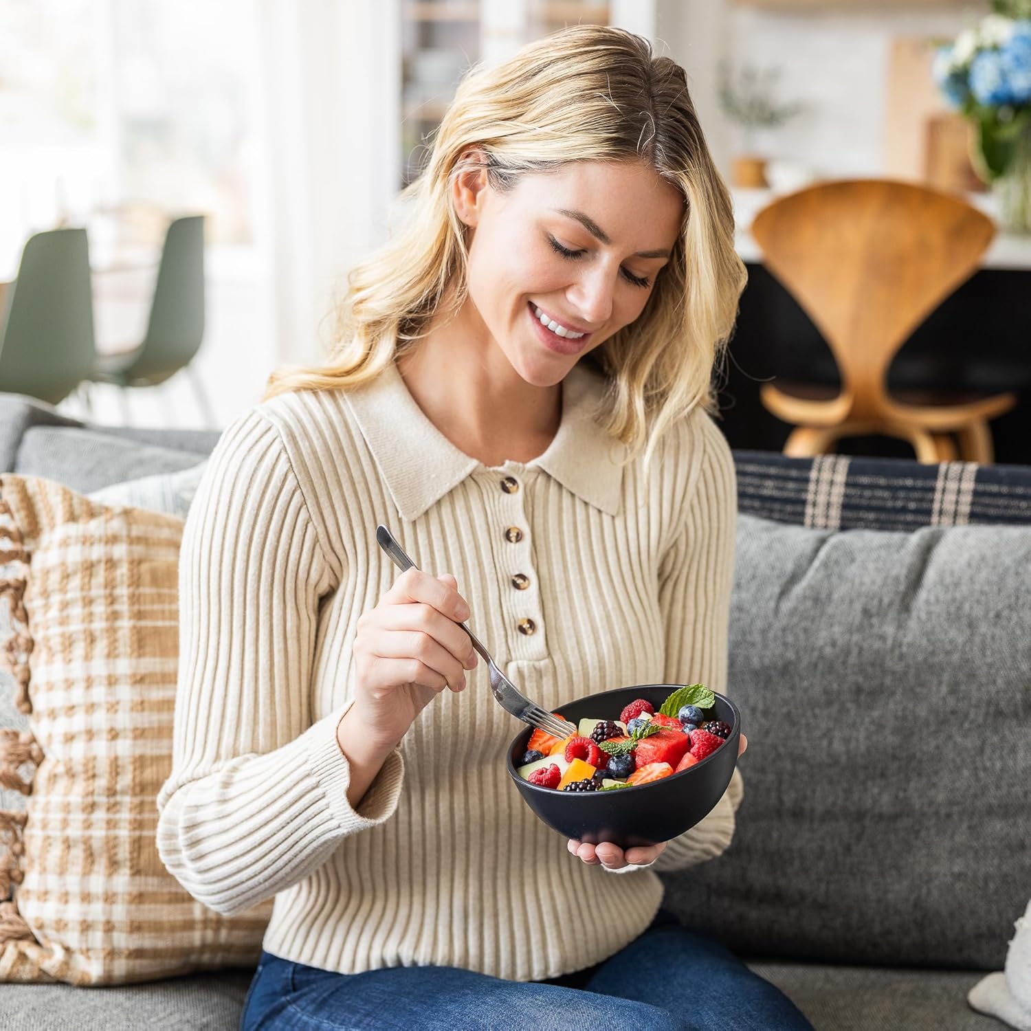 Grow Forward Premium Wheat Straw Bowls - 27oz Microwave Safe Plastic Cereal Bowls Set of 8 for Kitchen, Camping, RV, Dessert, Snack, Soup, Salad, Fruit - Reusable, Unbreakable & BPA Free - Midnight