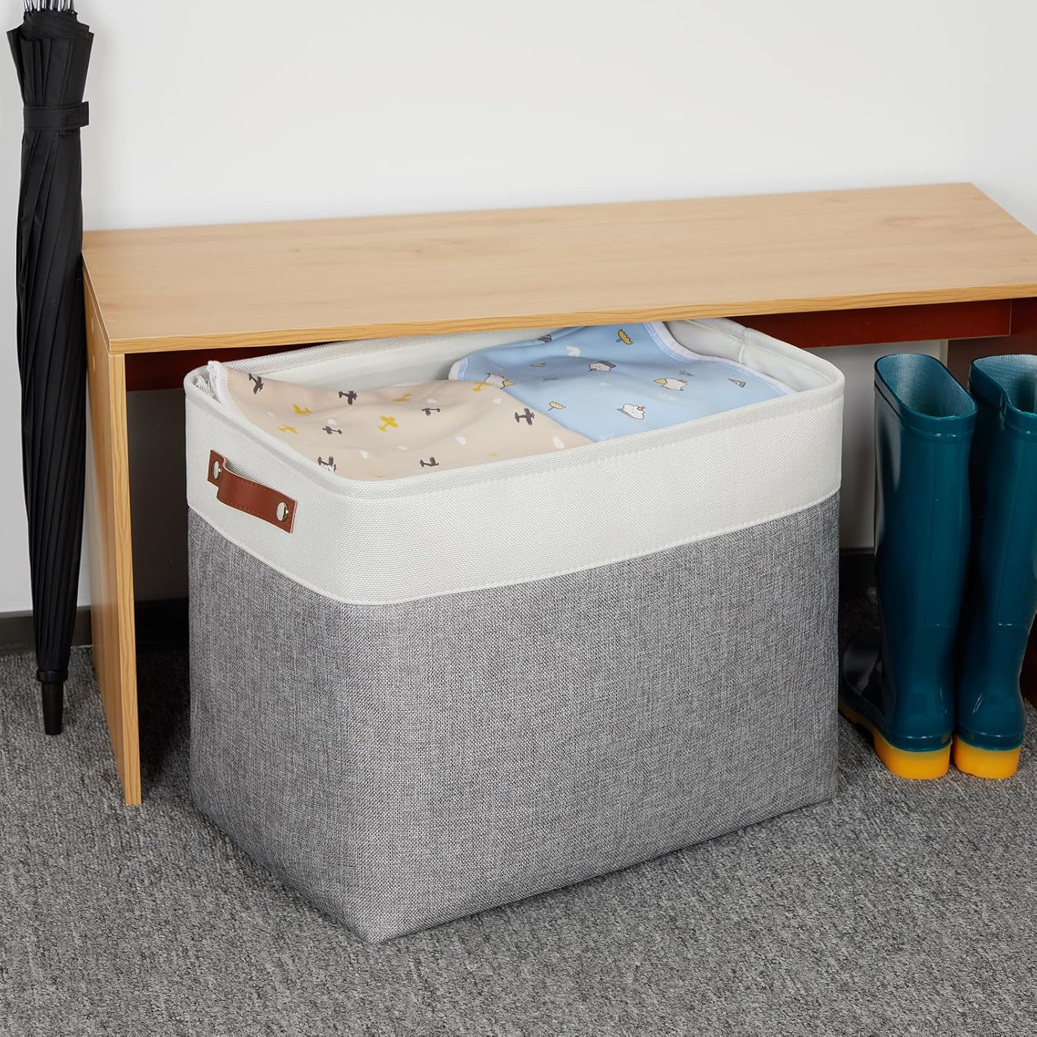 • 【Unique Design & Modern & Decorative】Set of 2 large storage baskets, dimensions(each): 17(L) x 12(W) x 15(H) inches. Collapsible storage baskets bring you organizing convenience and a sweet home. Great for socks, underwear, books, magazines, toys, baby clothes, pet products, wipes, towels, decorations, office supplies, DVDs, and gifts. The fabric baskets with neutral colors can match a lot of home styles - keeping your home nice and tidy.