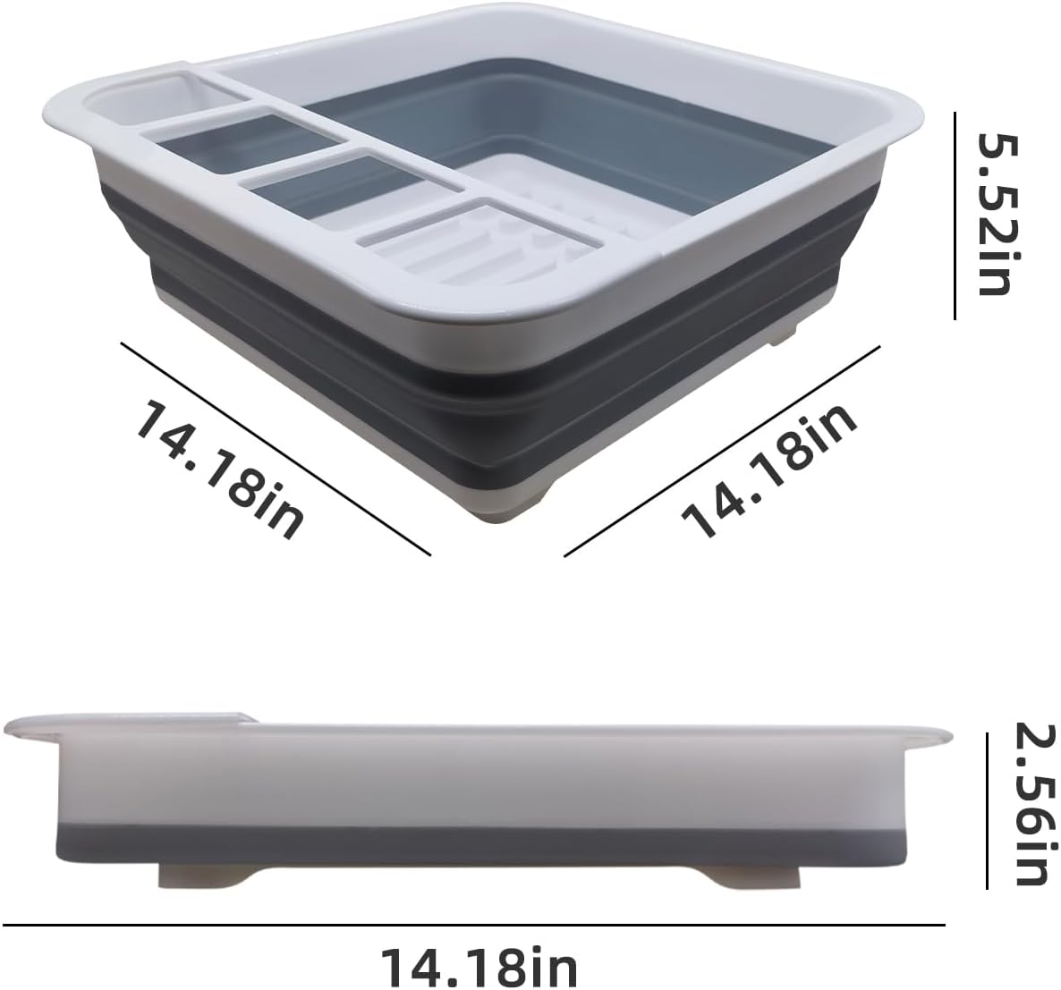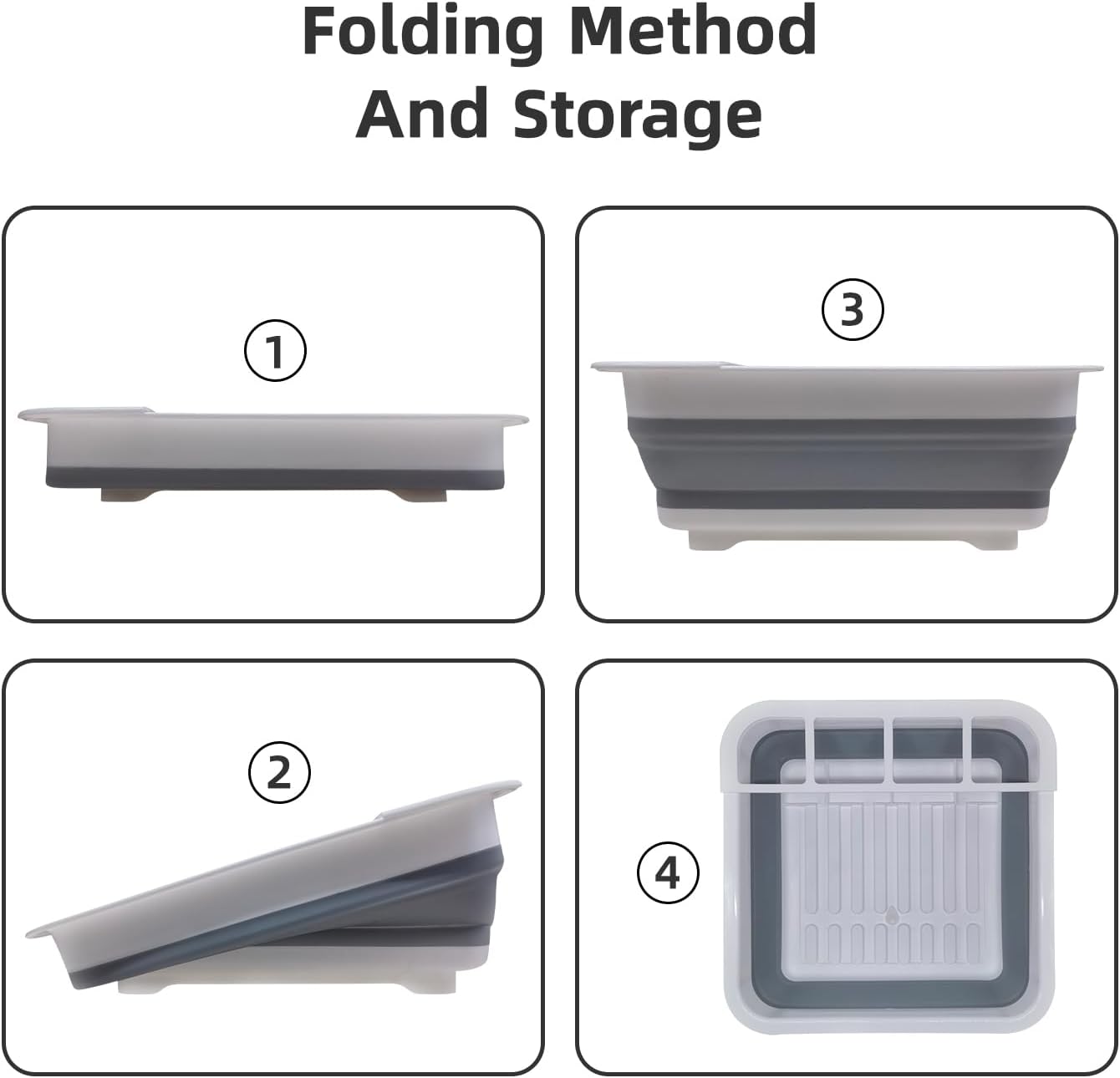 • 【Compact and Portable】The collapsible dish drainer is simply pop-up to open when using and collapses to flat for space-saving storage, you can easily store it under the sink or slip it into any cabinet. Suitable for both indoors & outdoors uses, such as camping, BBQ, RV and boats, campsite cleanup, and vacation homes, etc.