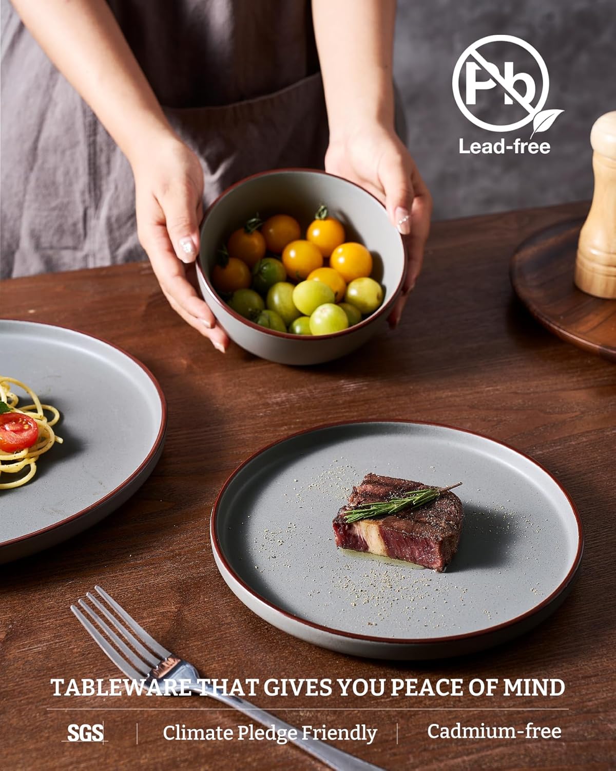 • 【FOOD GRADE NATURAL GLAZE】All of our dinnerware sets are made of food grade glaze. You can safely use them to serve steaks, salads or desserts, no need to worry about any harmful substances leaching into the food.