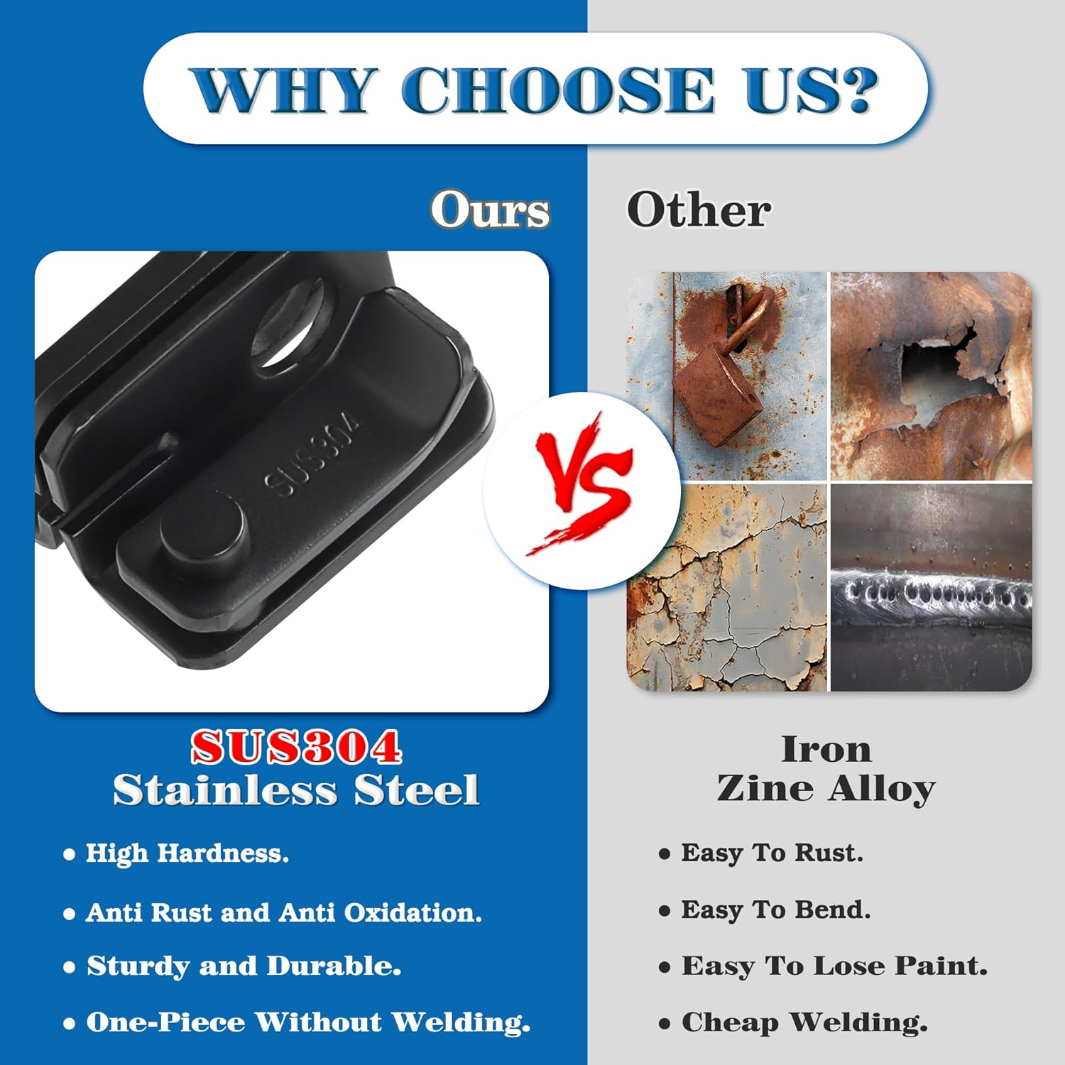 • 【Made of SUS304 Stainless Steel】The gate latches constructed from Hi-Q SUS304 stainless steel, strong and durable, ensuring quality and longevity, not easy to rust or oxidation.